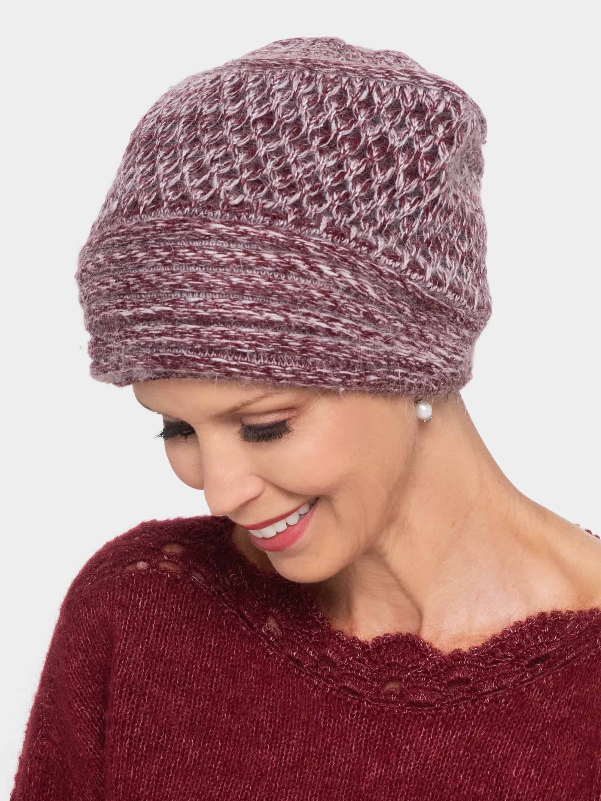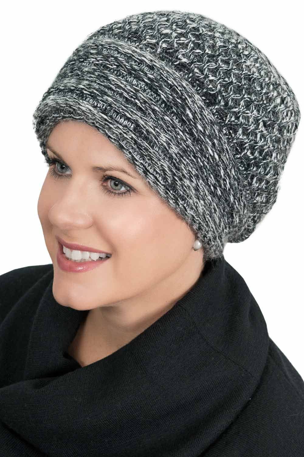 This soft beanie is made from an angora blend for supreme softness and warmth. Our Angora Cuff Beanie is a gorgeous choice for winter wear. The interior of this hat is lined in a sweater like material that features a soft feel, perfect for women with sensitive scalps. The textured look on this beanie gives the look of flattering fullness that is so often desired by women with hair loss due to cancer, chemotherapy, alopecia or other types of medical hair loss conditions. We love this look paired with both casual and dress wear. Throw it on with your favorite winter coat when you're out and about on cold winter days, or wear it with a cozy sweater and jeans. It also looks great dressed up with accessories and worn with slacks and a nicer blouse thanks to the angora material. Sparkly hat pins or cute flower pins are great additions to this piece of headwear. We just know you're going to love this warm winter look!