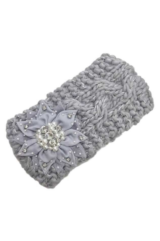 Tulle, pearls, crystals, and, metallic strings, these are a few of our favorite things! This wool blend knit cuff is intertwined with metallic thread and decorated with a pearl and jewel embellished tulle flower. Wear this fabulous and flirty accessory alone or over your basic turban to add extra warmth and a whole lot of ice to your look.