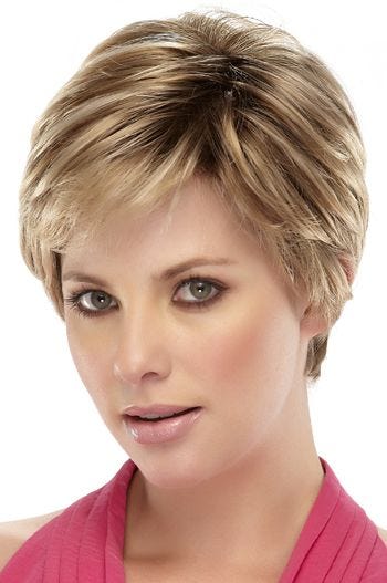 Annette by Jon Renau Wigs exudes classic elegance. With smooth, tapered layers and a soft finish, this wig is eager to please! A monofilament top provides multidirectional parting possibilites with optimum breathability, while a lace front allows for optional off the face styling and a natural looking hairline.