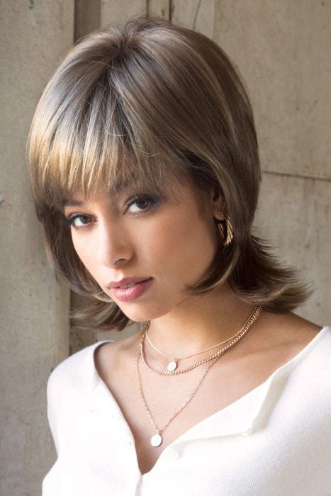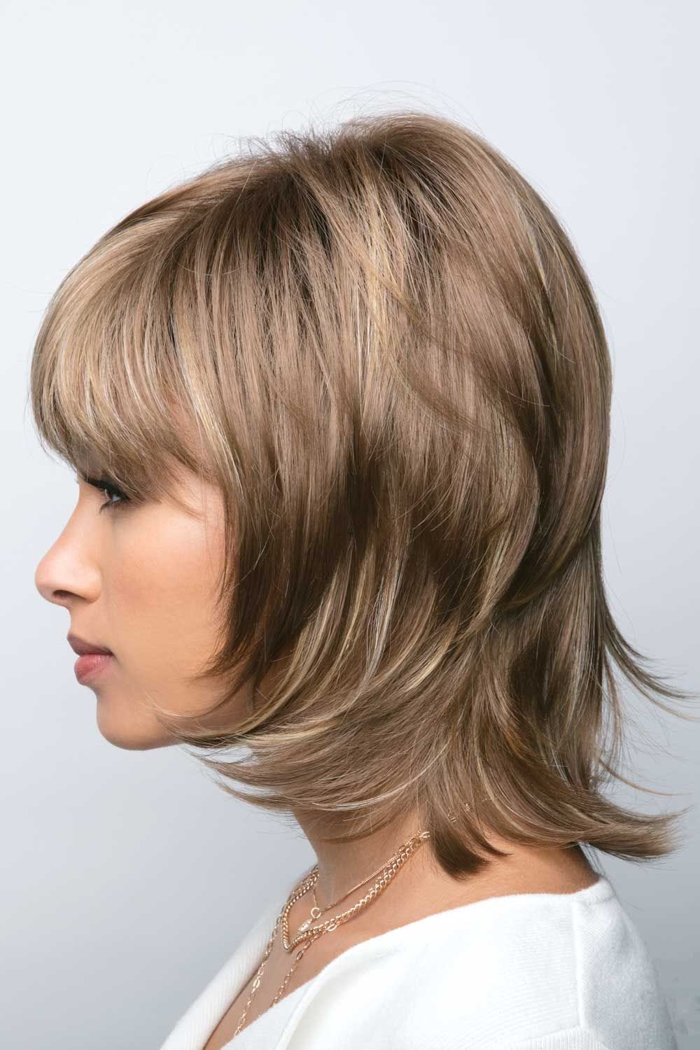 This shoulder length shag boasts flipped out layers that create a feminine frame. Just the right amount of volume makes this look perfectly pumped up. The face framing strands and wispy bangs make this style a sure winner!