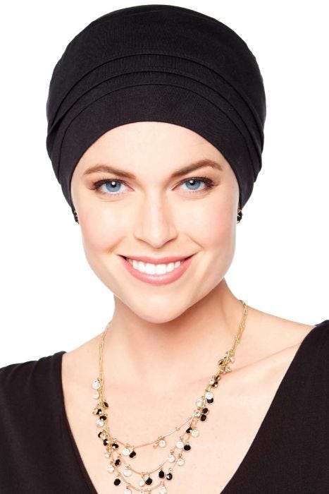 Versatile and stylish, the Tiffany Turban can be dressed up for a formal look, paired with PJs and worn as comfy-cozy sleep cap, and everything in between. We love this turban for its timeless simplicity and secure fit. It hugs the head just right and offers the perfect amount of stretch for a custom fit. Make this turban a staple in your headwear wardrobe.