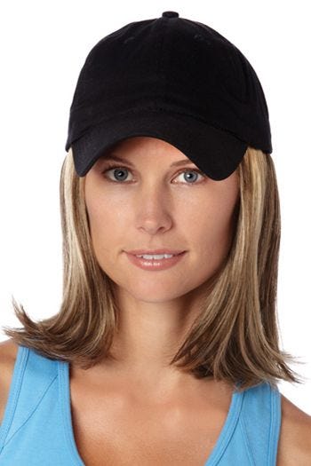 Designed for comfort, beautifully blended hair is permanently attached to a 100% cotton baseball cap creating a ready-to-wear hair fashion alternative with no styling needed.