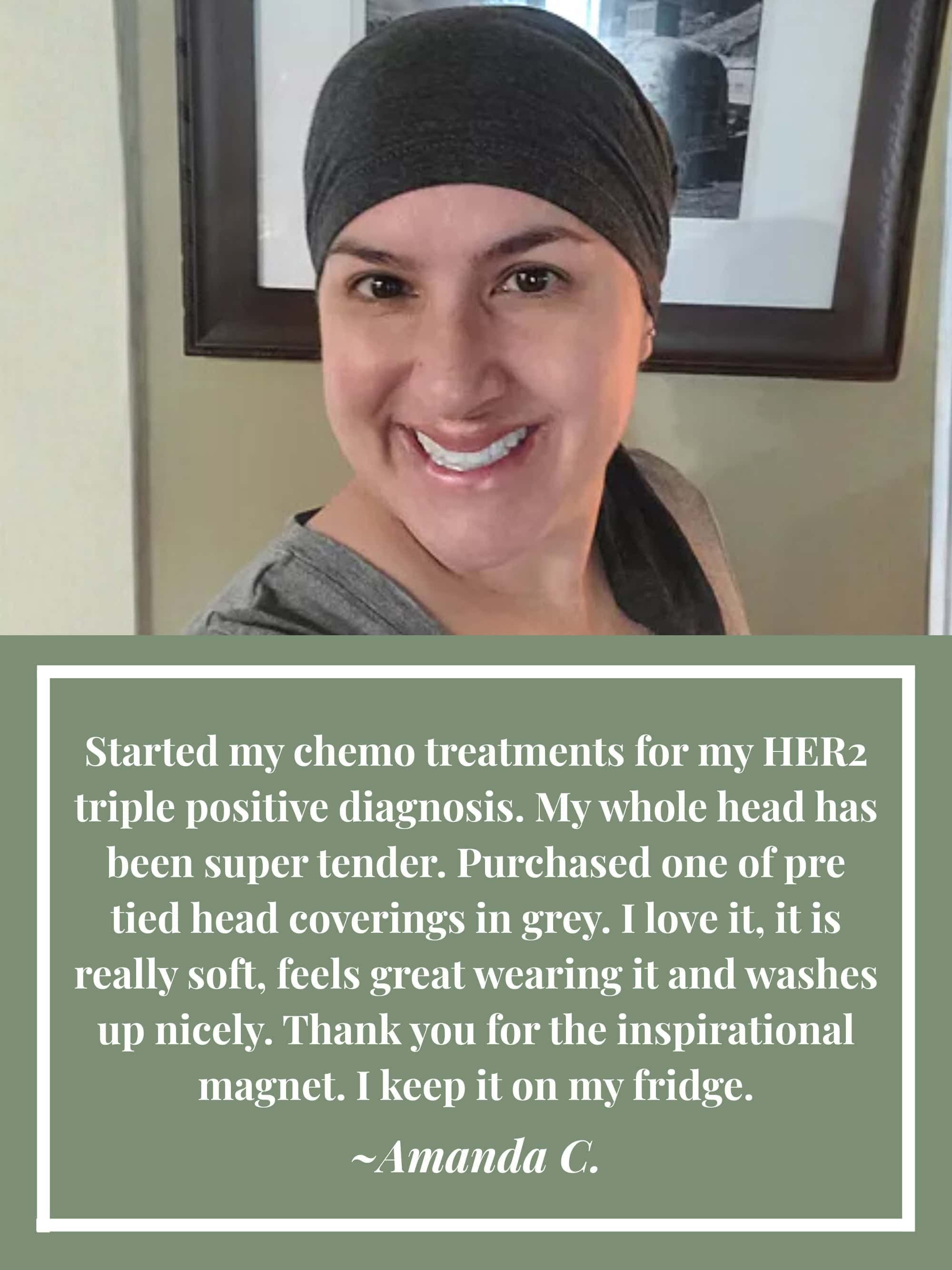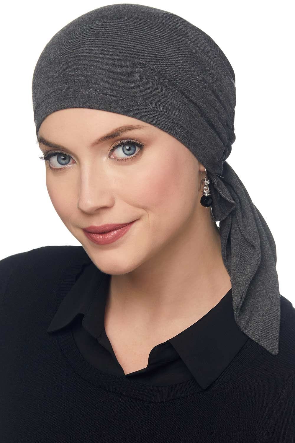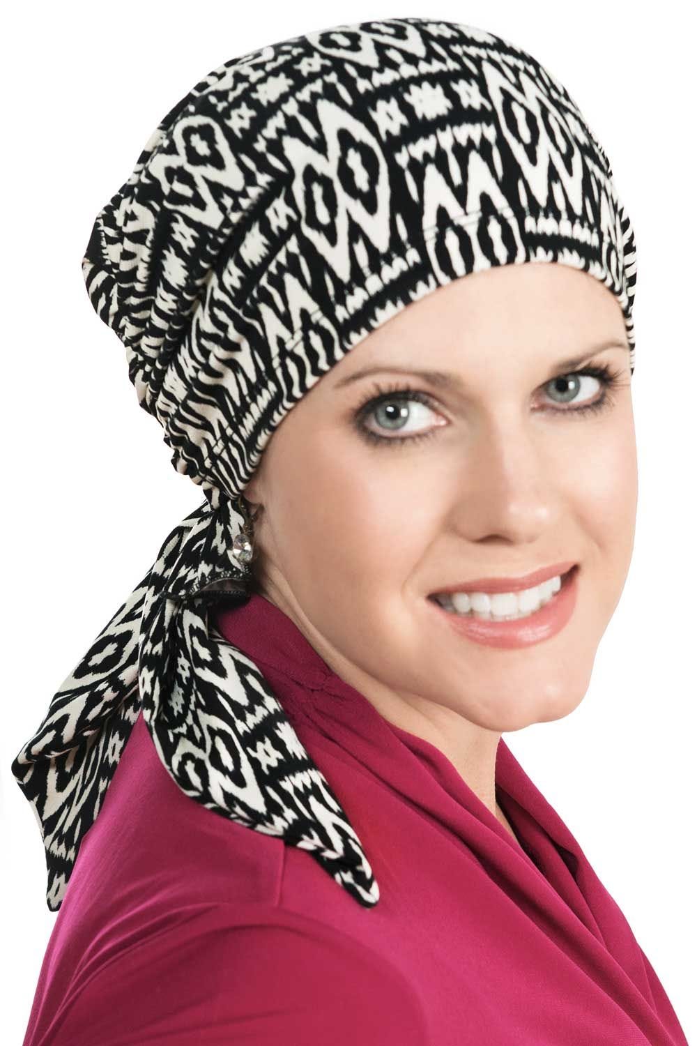 This easy to wear "Boho Scarf" is the latest addition to our pre tied scarf line. Designed by Danielle Yates exclusively for Headcovers.com, this innovative design simply slips on the head. No tying skills required. At all. Get the look of a pre tied scarf with zero effort! For a fashion forward, easy to wear look, simply slip the pre-formed cap onto the head and secure the tails using a scrunchie to secure. Each beautiful pre tied scarf comes with a matching scrunchie that can be used to secure the two tails in the back. However, this design can also be worn with the tails tied into a simple knot or bow if desired. Wear this stylish look with just about anything! It pairs perfectly with casual wear and can also be dressed up when paired with more elegant attire. We offer our Boho Scarf in several fashionable prints, as well as beautifully bright solid colors that will go with just about anything in your wardrobe. This effortless style is sure to turn heads!