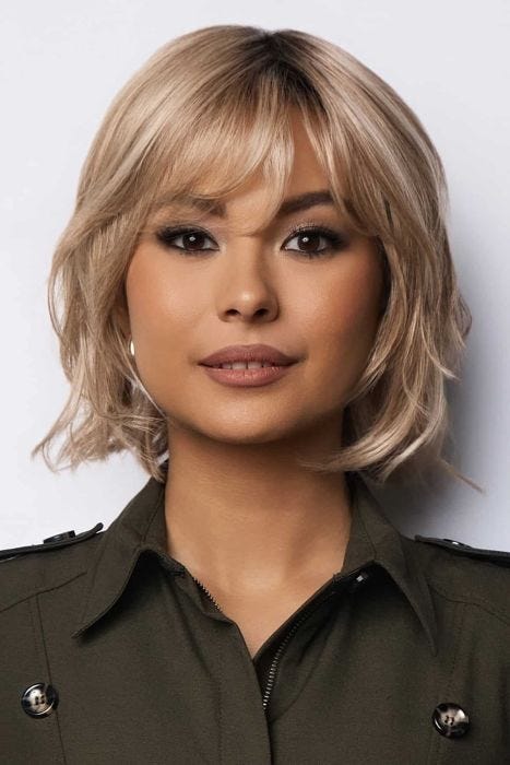Brann is a chin-length wavy bob wig with a softly layered silhouette and a wispy fringe that skims the forehead. The cut hugs the jawline, keeping the shape clean and balanced without heaviness. Loose waves move through the layers, giving the style gentle texture and a relaxed finish. An extended lace front allows you to wear the hair off the face with confidence, while the wide monofilament part supports flexible parting that looks natural up close. Heat-friendly fiber offers light styling flexibility when you want to refine the shape. This is a lightweight and dependable style from morning errands to evening plans.