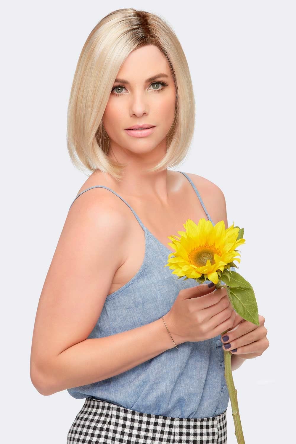 This long bob screams sophistication. Face-framing, graduated layers create movement and give this style a realistic look. The ends are lightly flipped and can be combed or finger styled several ways to give you the most flattering look possible. The monofilament top is hand tied, giving the natural appearance of hair growing directly from the scalp. The part can be easily shifted or changed depending on your preference. The lace front of this wig gives a natural looking hair line and allows the hair to be styled off of the face or behind the ears with ease. Cameron by Jon Renau Wigs is the ultimate in styling versatility.