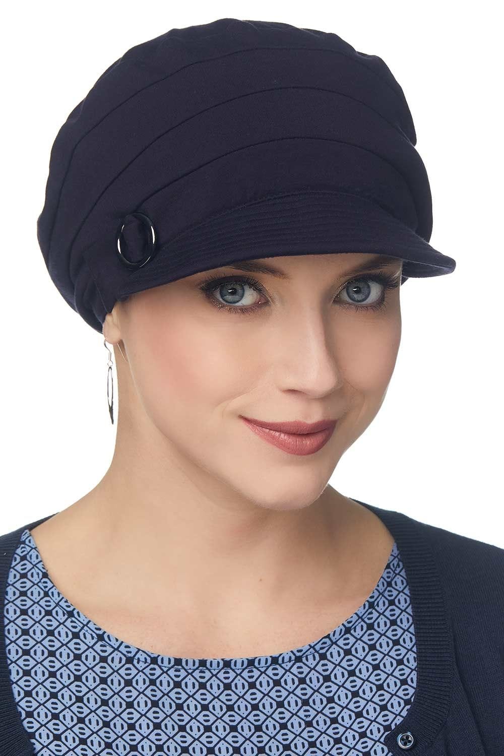Turn up the volume in the Cardani Cadet Hat! This expertly designed military style cap provides unbelievable fullness to create a look that's universally flattering. Decorative seams, a metallic belt buckle, and a short soft brim complete this ultra fashionable style. We're certain you'll love this full head coverage, super soft hat as much as we do. This hat was designed by Danielle Yates exclusively for Cardani.