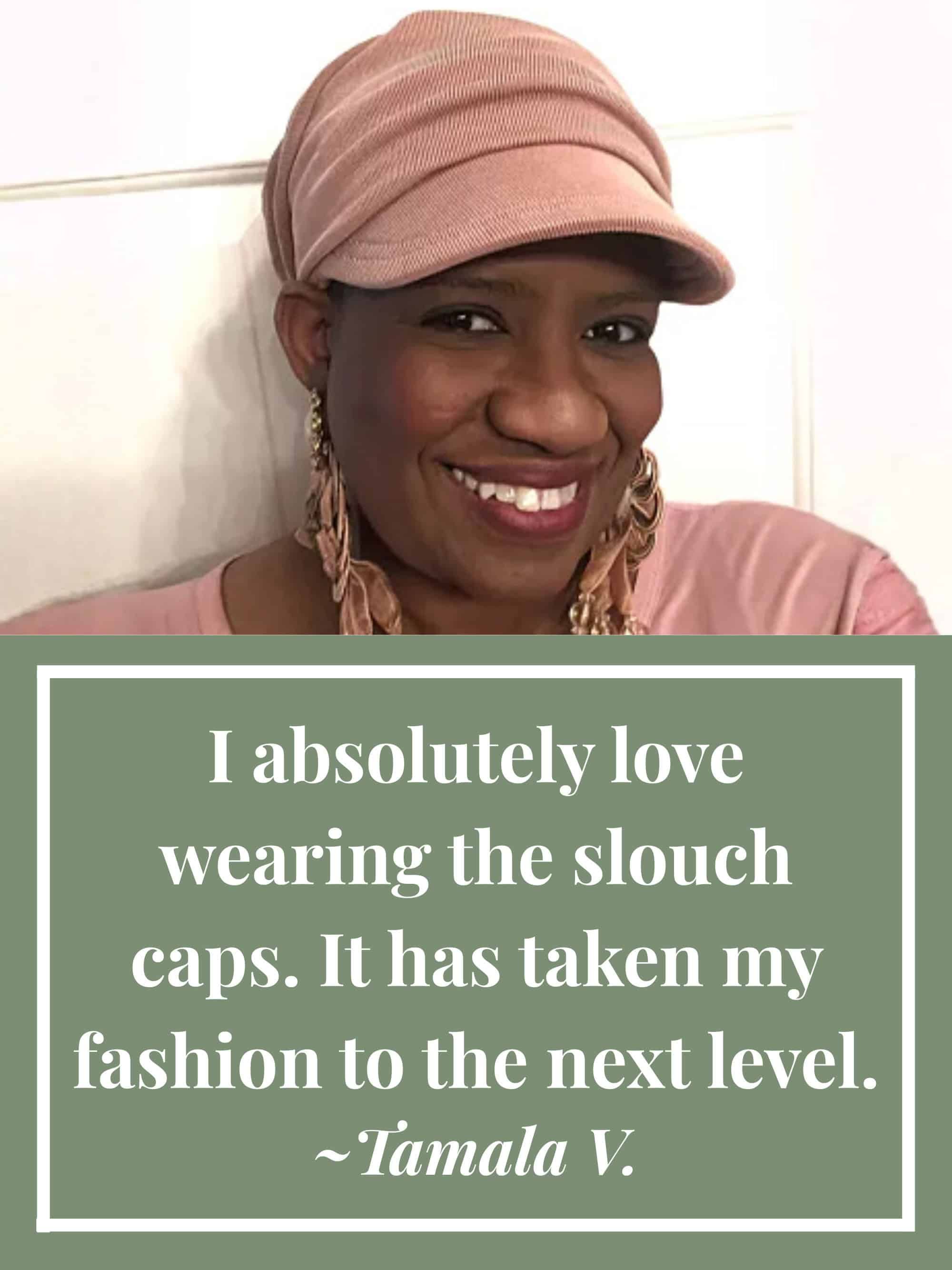 This relaxed and easy style offers lots of volume and complete comfort. The silky-soft ribbed bamboo viscose is ultra soft on sensitive skin. A bill in front provides sun protection and adds a sporty flair. You'll love the full, fun, slouchy look this cap provides. Effortless and casual, this hat is a great pick for everyday wear. This stylish hat was designed in the USA by Danielle Yates, exclusively for Cardani Headwear. Tagless for your comfort.