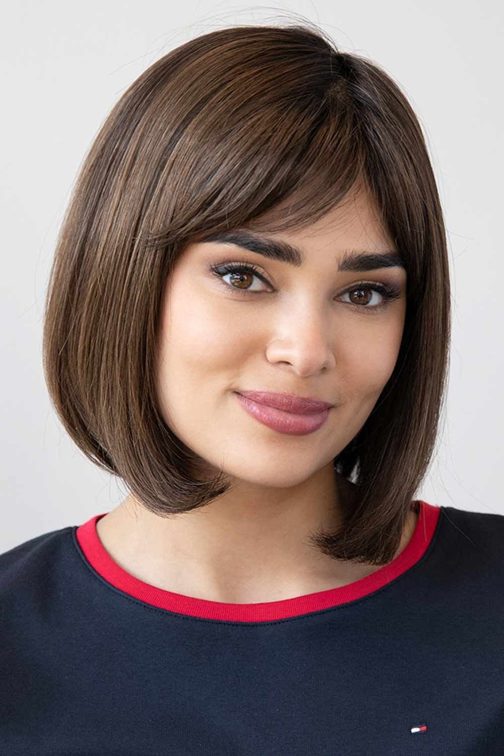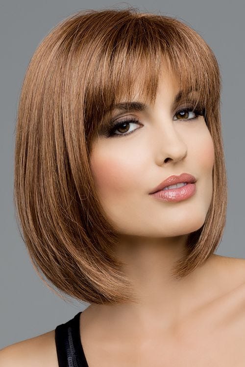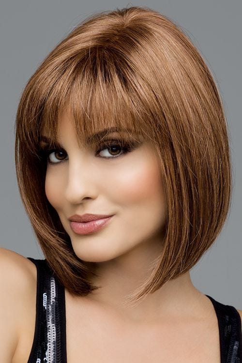 This look puts a sexy twist on a classic bob style with light and airy wisp bangs. Razor cut ends add to the allure of this look. A hand tied, monofilament top offers the ultimate in comfort and gives the appearance of natural hair growth while allowing for ample styling options.