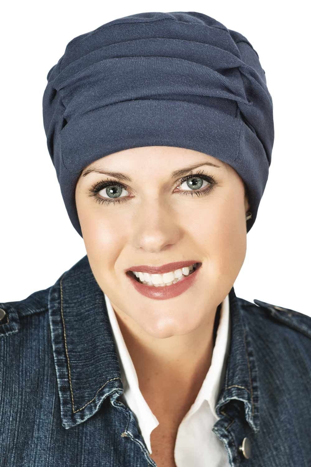 Evenly spaced pleats ripple around the crown, creating graceful volume that keeps your head from looking flat while gently framing the face. The result is balanced, flattering, and quietly chic. Made from 100% organic cotton interlock knit, it feels smooth and breathable against sensitive skin — never itchy, never tight. The stretch fit molds comfortably to your head and stays put without effort.