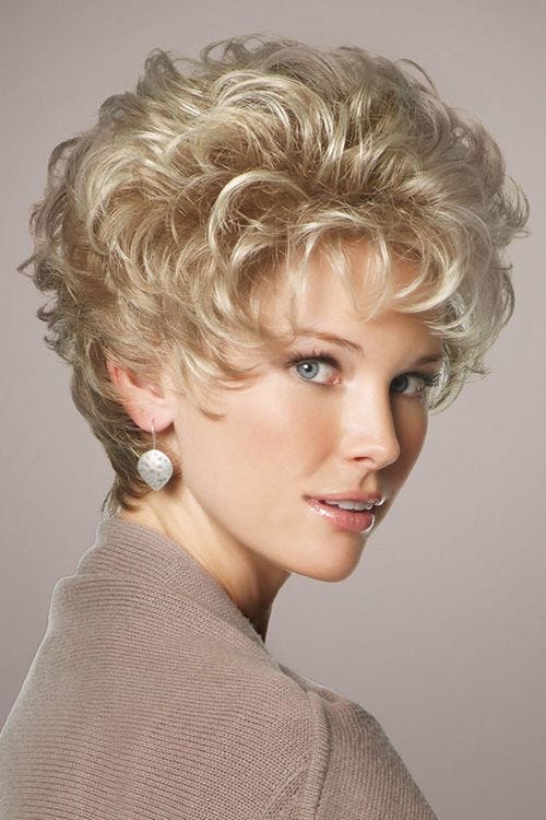 This fluffed up style pumps up the volume with tons of curls. Soft bangs curl just above the eyebrows for an elegant look. An inside hidden weft gives a natural looking hairline while ultra thin adjusters in back add comfort. This wig is best suited for those with an average head size.
