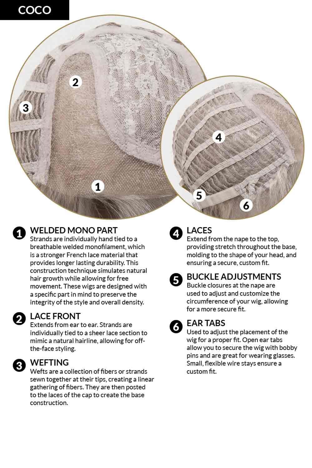 A lace front creates the illusion of a seamless hairline, while the monofilament part delivers natural-looking growth and realistic styling. With its light-medium density, Coco feels full but never bulky, and the open-wefted cap keeps it breathable. Adjustable straps and contoured ear tabs ensure security and comfort, making Coco a go-to wavy bob wig for everyday confidence.