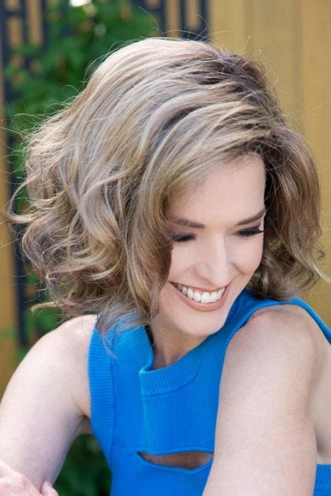 Coco brings waves to life in a playful yet refined chin-length bob. Tousled layers fall just to the jawline, curving with natural bounce and light volume. The side part and gentle wave pattern soften the silhouette, giving Coco a chic, modern shape that flatters effortlessly.