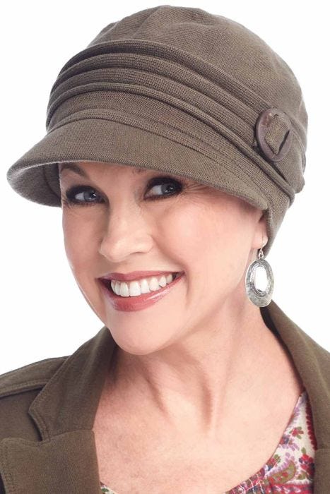 With its classic look and comfy fit, Brandi is sure to become your new favorite newsboy cap. Strategic pleating around the cap gives flattering fullness and volume, while a shell button and small brim add timeless style. Made from substantial 100% cotton, the Brandi is breathable, comfortable, and perfectly suited for sensitive scalps.