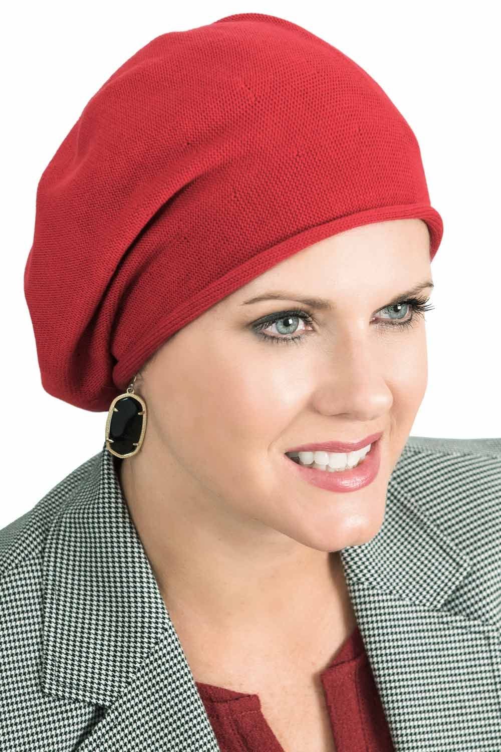 This 100% cotton knitted beanie has room in the back for a trendy, slouchy look. You can also wear this style to the side for a classic beret look. This is the perfect everyday hat for casual wear that can be dressed up or down depending on your mood and personal style. Pair it with just about anything in your wardrobe for a chic look that is sure to impress. From feminine and flirty, to laid back and leisurely, you can't go wrong with the Slouchy Beret Cap. You can dress it up or dress it down! Wear it to lounge around the house or for a night out on the town. It's soft feel is ideal for those women with even the most sensitive of scalps. This look can even be worn by women with hair to cover up bad hair days or to preserve modesty.