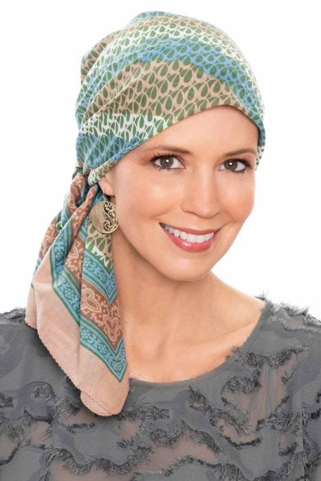 Featuring swirls and stripes, the Sierra Swirl print woodblock head scarf is a fun, modern option. Made with soft, soothing cotton, these scarves are great for women with sensitive scalps, as well as cancer patients and women with hair loss due to other types of medical conditions. Totally fashion forward, they're also great for anyone looking to add some fun style to their wardrobe. For an added boost of volume and comfort, wear with our Cardani Bamboo Scarf Pad.