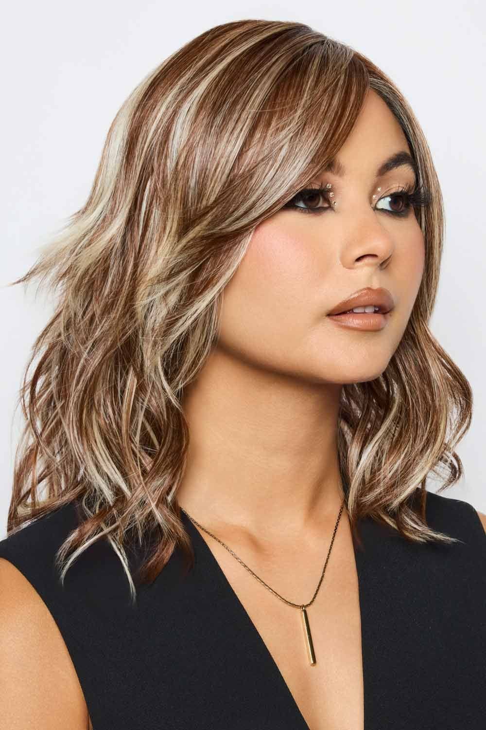 Soft, shoulder-grazing waves spiral around the face in this mid-length lace front wig that feels as natural as your own hair. A gently sweeping side bang blends into textured layers, creating an easy, flattering shape that frames the face without falling flat. The airy waves hold their shape with light movement, offering a breezy, natural-looking finish.