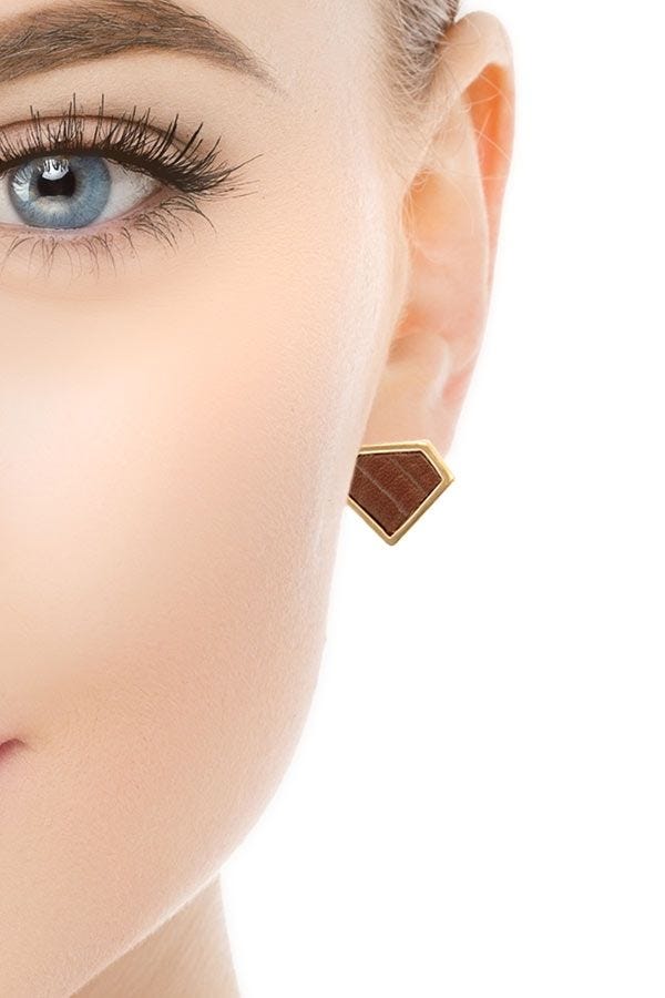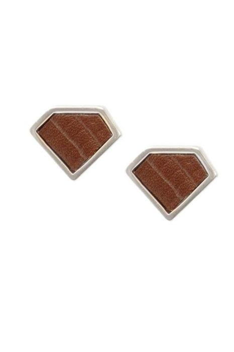 Show off your avant guarde style with the fabulous Diamond Leather Stud Earrings. Pressed leather is perfectly situated within a radiant diamond shaped setting.