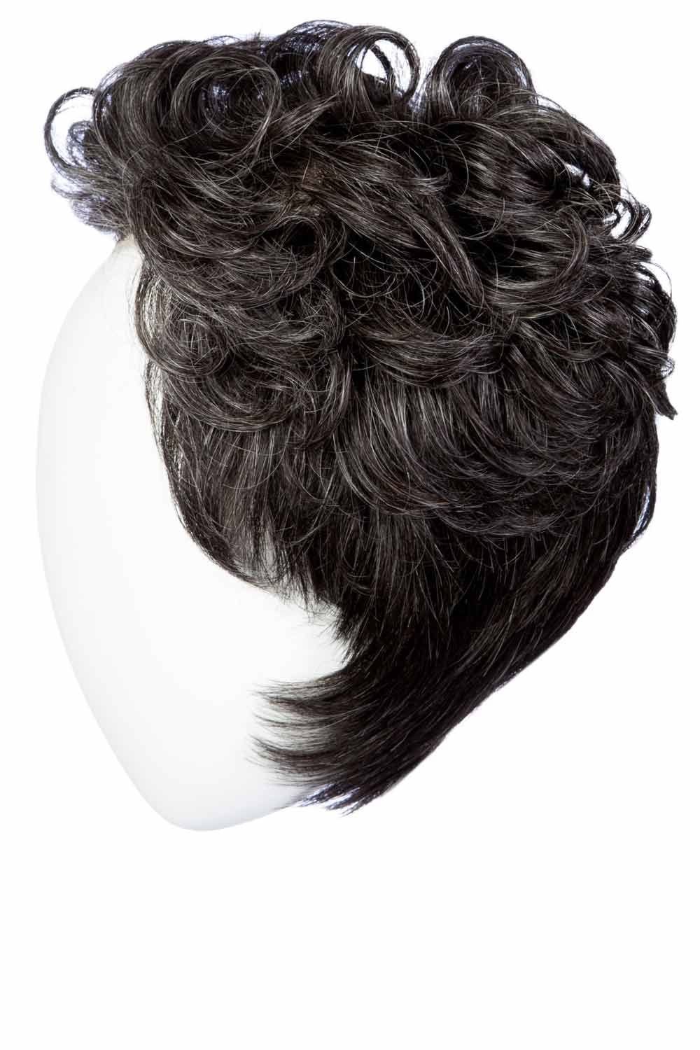 Dignified Mens Wig by HIM features soft, smooth curls with shorter, natural waves at the sides and back. Purposely designed longer lengths around the ears and at the nape are meant to be custom cut to suit your specific style. Heat-friendly synthetic hair is easily smoothed straight if desired.