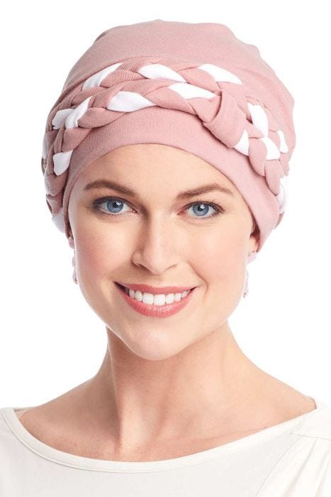 Two-Tone Double Braid Turban Set | All Cotton 2 pc Double Braid - Pink Blush/White