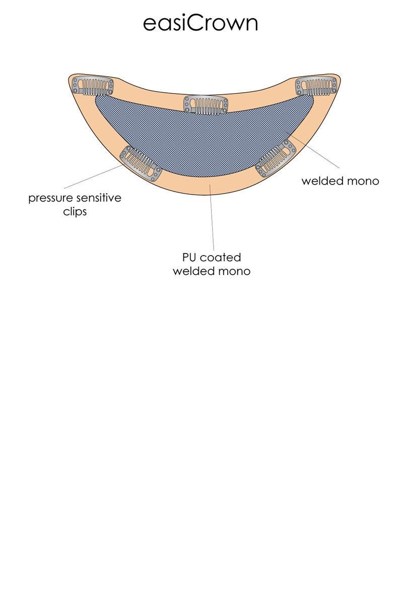 Add luxurious volume and thickness at your crown and back of the head with the ultimate in styling flexibility. The fibers are made from heat friendly synthetic material and can be styled using any heat styling tool. While it is not a full wig, this one-piece volumizer attaches quickly and gently over your existing hair using discreet, pressure sensitive clips that stay in place through a busy day. This is the perfect topper for blending into your existing hair thanks to it's ability to be heat styled to flawlessly match your hair. A monofilament base provides the look of natural hair growth directly from the scalp for a natural look while a Polyurethane perimeter provides the ultimate in comfort. Add a full 18" of luxurious length with the easiCrown HD Topper by Jon Renau Wigs!