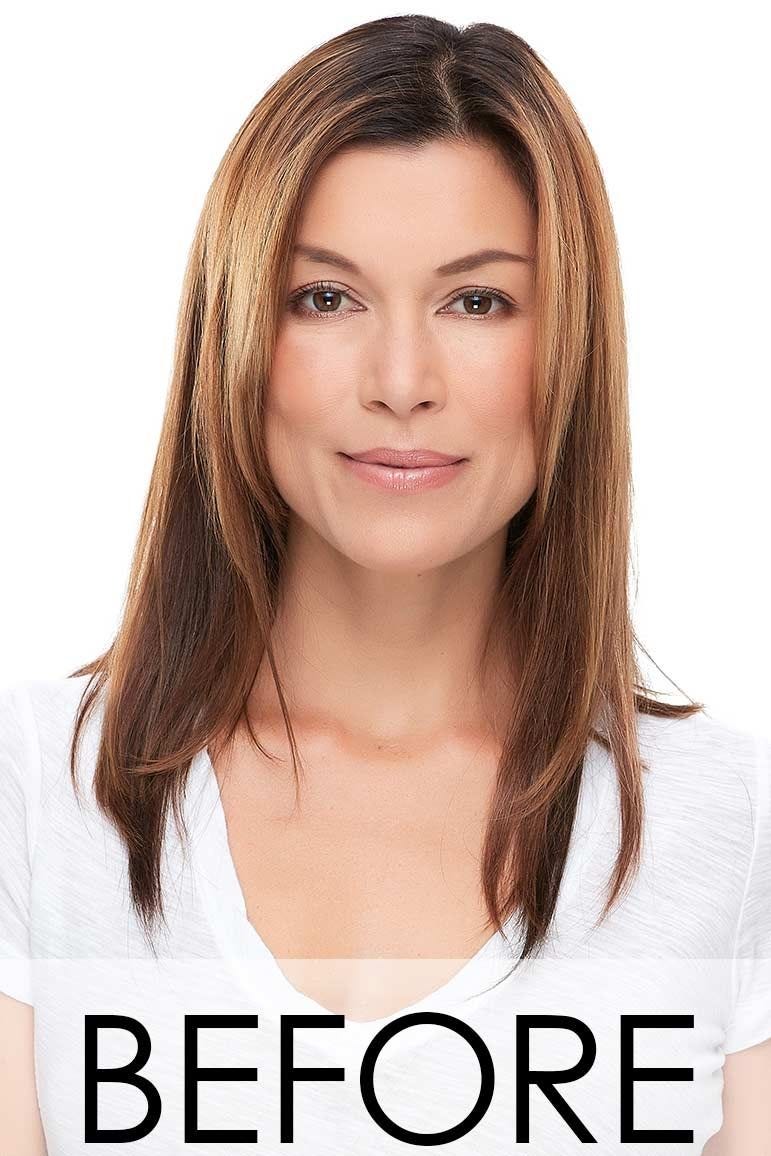 Add luxurious volume and thickness at your crown or part with the ultimate in styling flexibility. While it is not a full wig, this one-piece volumizer attaches quickly and gently over your existing hair using discreet, pressure sensitive clips that stay in place through a busy day. This is the perfect topper for blending into your existing hair thanks to it's ability to be heat styled to flawlessly match your hair. A monofilament base provides the look of natural hair growth directly from the scalp for a natural look.