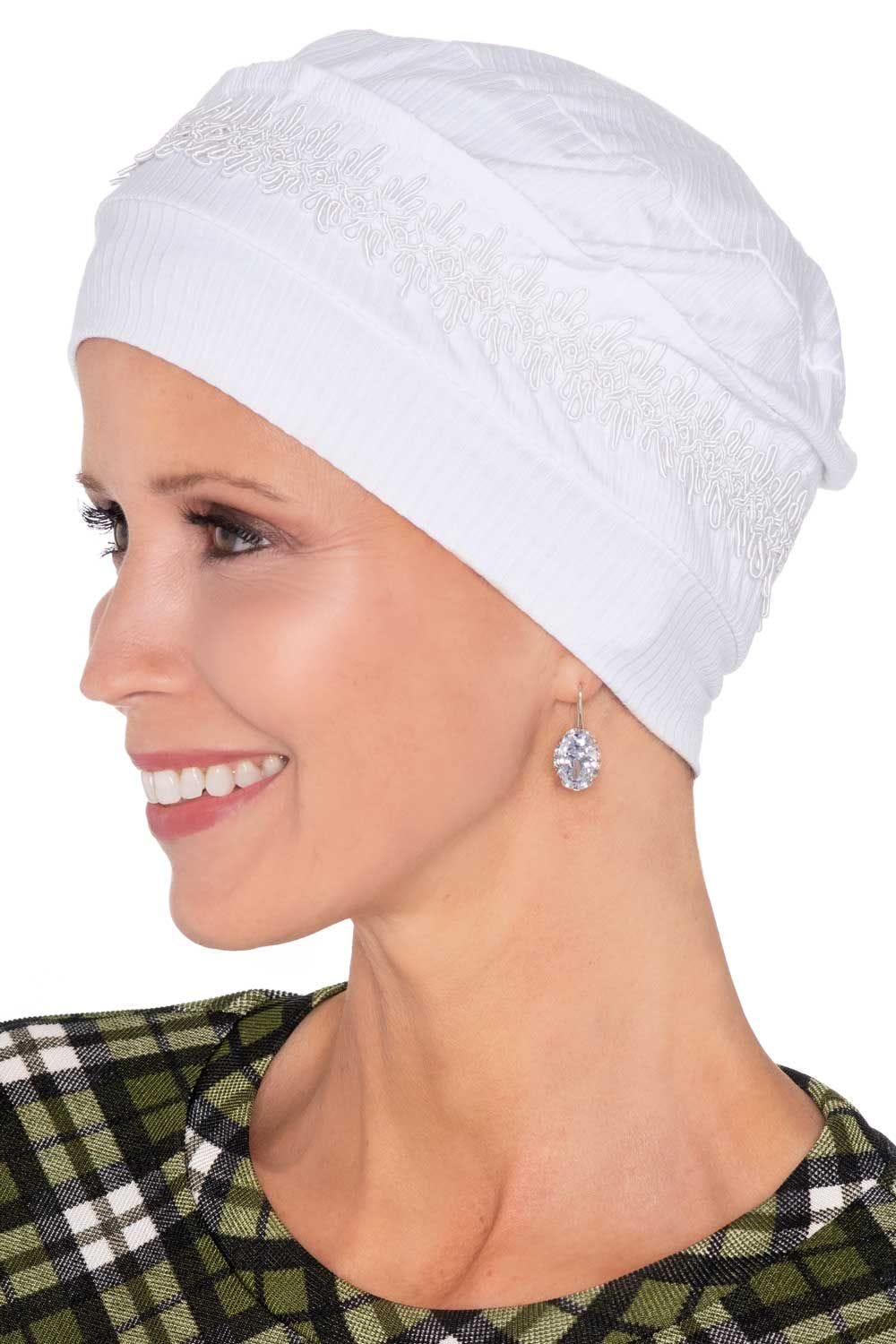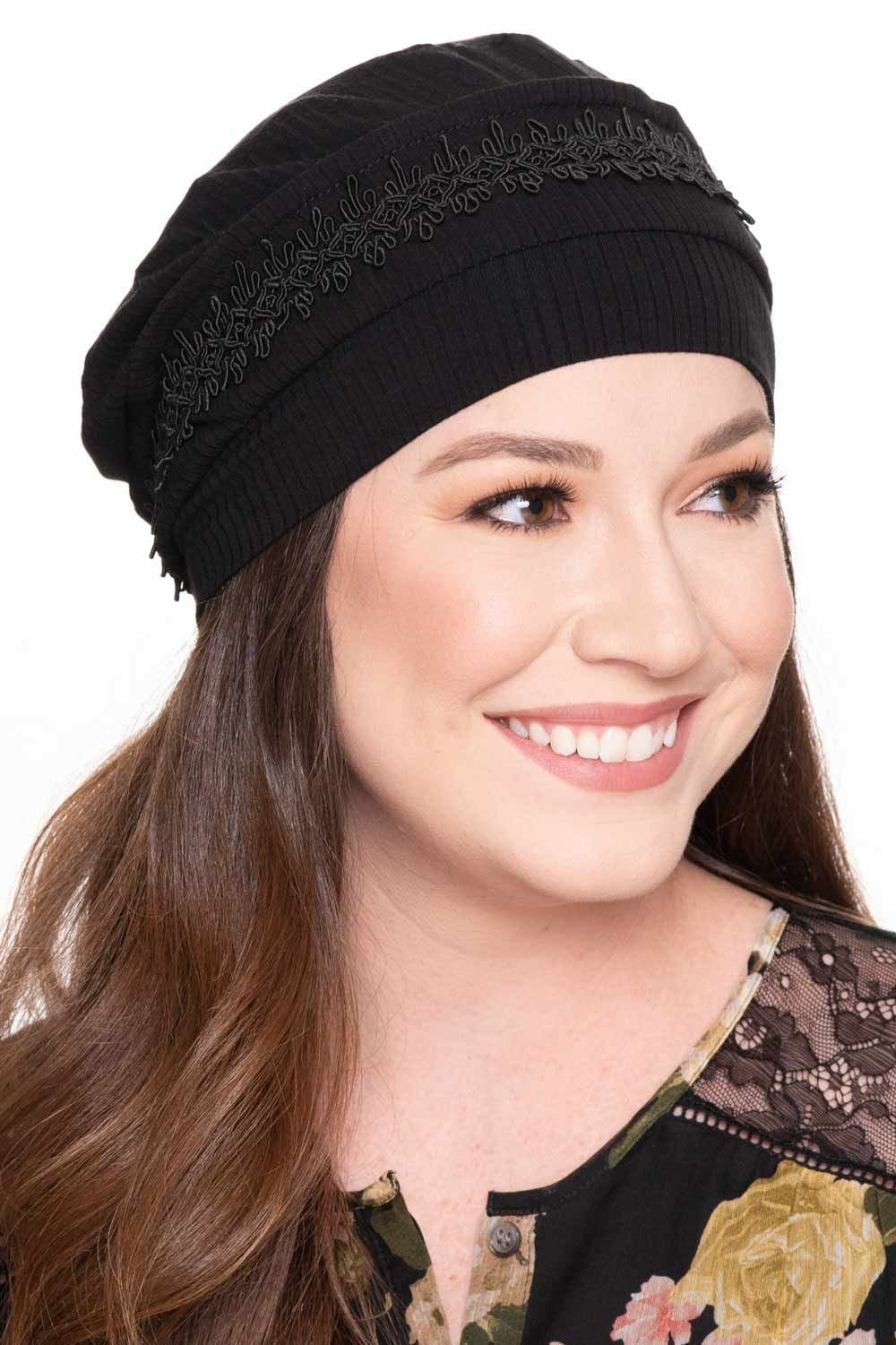 The Ribbed Bamboo Viscose Eleanor is an elegant, feminine style that is sophisticated enough for day-to-day wear and soft enough to wear as a sleep cap. This silky smooth cap is made from ribbed bamboo viscose for a luxuriously soft, cooling feel on the scalp. In addition to the buttery fabric, this hat has a lovely lace trim that is sure to flatter.