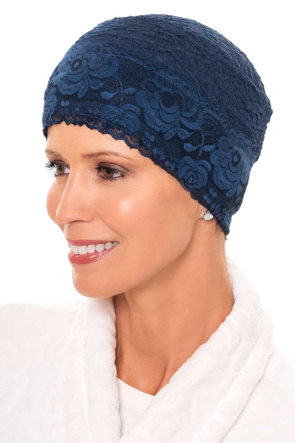 A pretty sleep cap that feels as good as it looks. The Emily Sleep Cap features a lightly textured fabric that’s cool and smooth—like satin—and won’t itch or scratch sensitive skin. The gentle stretch hugs comfortably without pressure, while delicate lace trim adds just the right touch of femininity.
