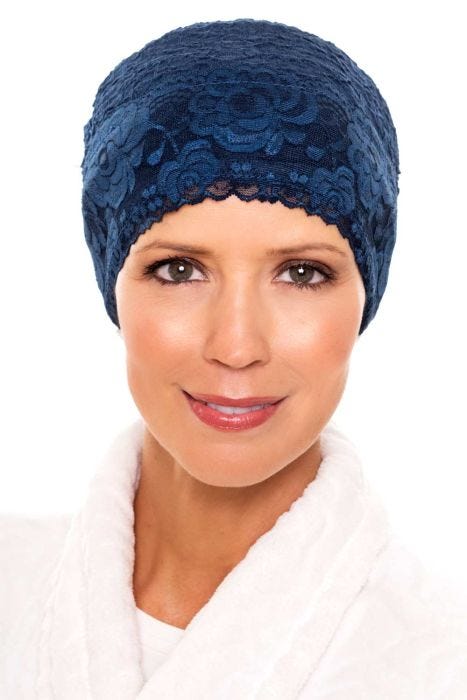 Designed for women experiencing hair loss from cancer, chemotherapy, or alopecia, this sleep hat for women offers soothing coverage through the night—or while lounging at home. The breathable material helps regulate warmth without overheating, keeping you cozy and confident. Each one is sewn in the USA with the softness and craftsmanship you can feel from the moment you slip it on.