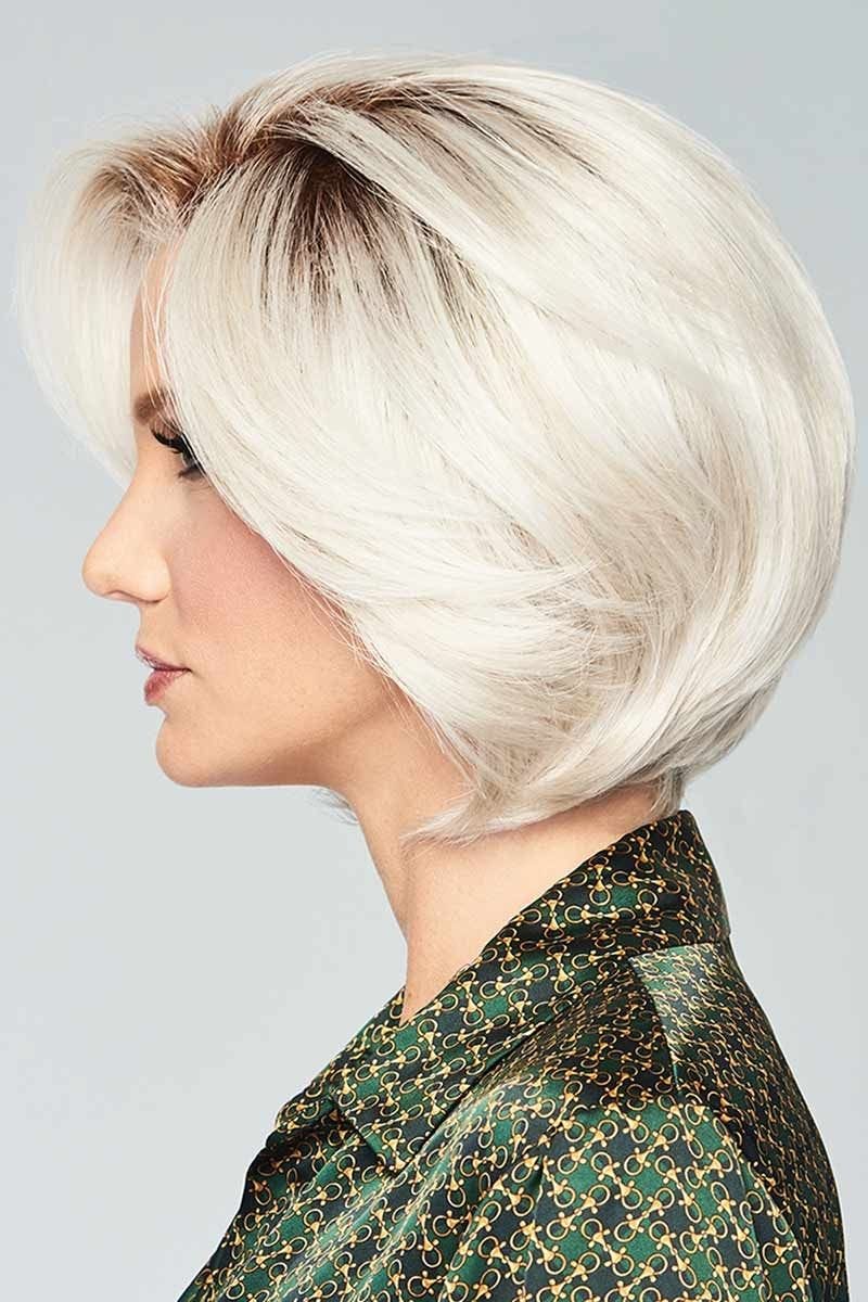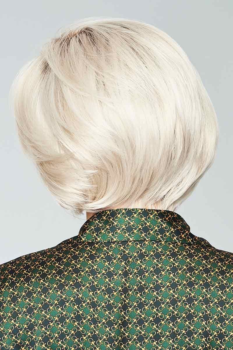 Soft waves sweep just below the chin, forming a modern bob that gently grazes the neckline. The layered texture ripples from crown to nape, while a sheer temple-to-temple lace front and fully hand-tied top give the illusion of natural hair growth. Designed in a light density and weighing only about 3.75 oz, this style drapes beautifully, creating movement that feels like real hair.