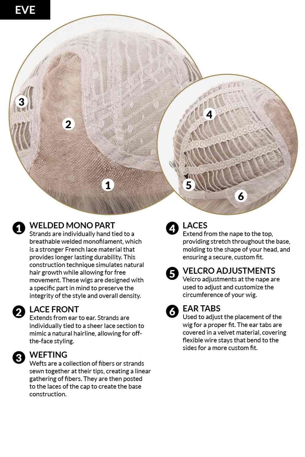 Eve's monofilament part and lace front give the look of hair growing from the scalp for an ultra natural look. The lace front creates a realistic hairline, allowing the hair to be worn away from the face. The straight synthetic hair holds its style, ensuring it will stay beautifully sleek effortlessly.