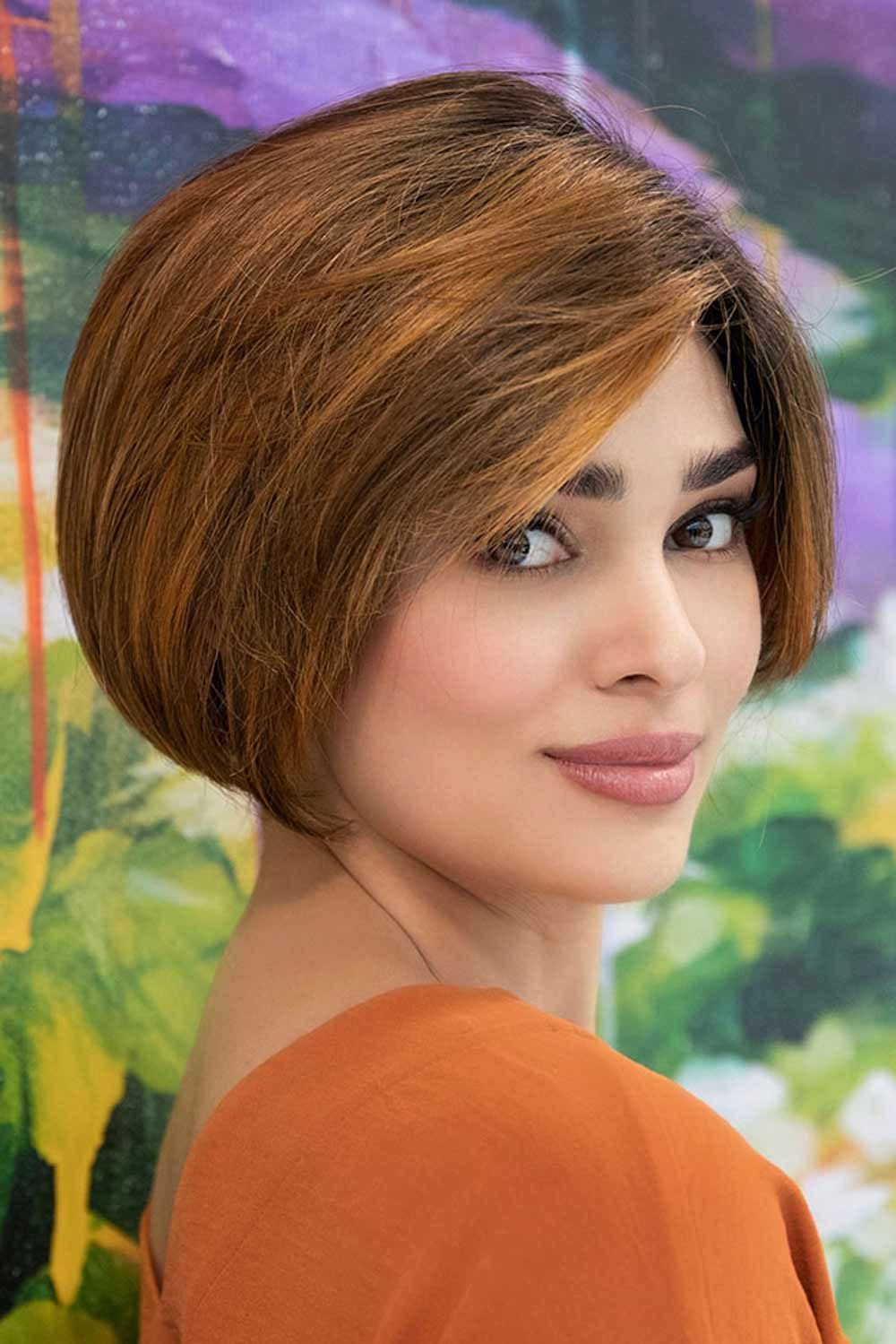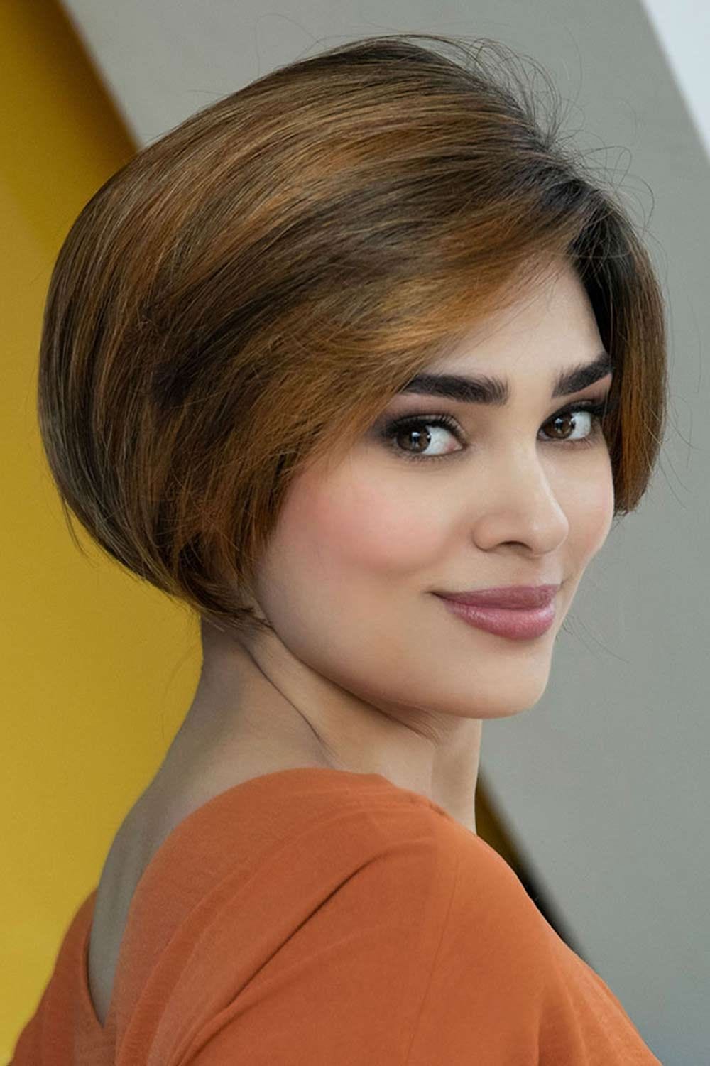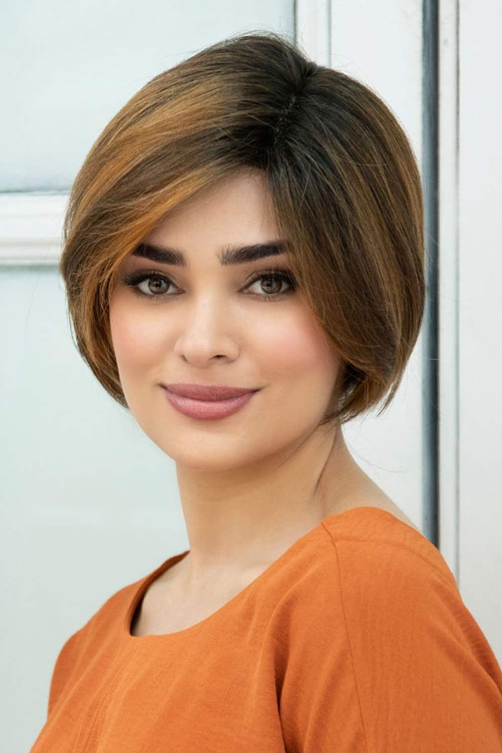 This understated chin-grazing cut will never go out of style. A classic bob cut with a side part and soft faces that subtly sweep across the face, Eve gives an ever-flattering look with the perfect amount of volume. A mono part gives an extra realistic look, while the lace front allows you to style the hair off the face for an even more sleek and sophisticated look.