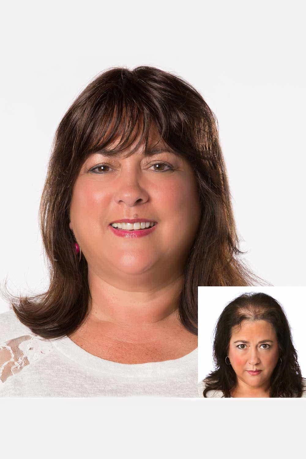 The Faux Filler Ultimate Straight Topper by Toni Brattin features complete crown coverage and adds volume and length, while the integrated front bang creates a virtually undetectable natural look. Secured with pressure-sensitive snap clips, this topper blends seamlessly with your natural hair for perfect coverage and style-ability.