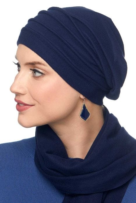 Our popular patented slouchy snood is now available in fleece too! Fashioned in warm, buttery soft micro fleece chamois, our patent pending design provides body and fullness to the head, making this cap particularly flattering for women with hair loss from cancer, chemotherapy or other conditions. This incredibly soft and cozy cap will keep you nice and warm this season. This trendy hat is made in the USA.