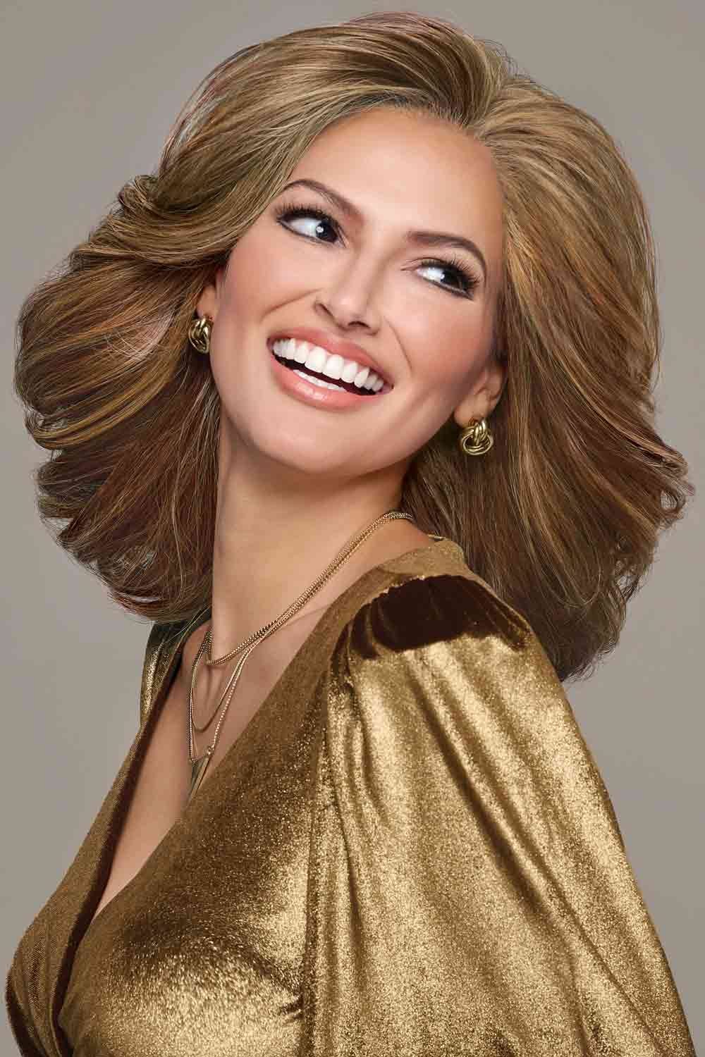 Feathered layers take flight in this butterfly cut wig, blending soft, face-framing volume with longer lengths that flip back effortlessly. The shoulder-skimming style tapers into a subtle V-shape at the back, while airy, eyelash-grazing bangs add a hint of retro charm with a modern twist.
