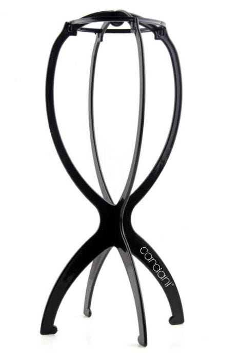 This folding wig stand opens to approximately 14″ tall and gives your wig a stable home between wears. The lightweight plastic base pops open for use and folds flat for storage or travel — perfect when you’re on the move or short on space.