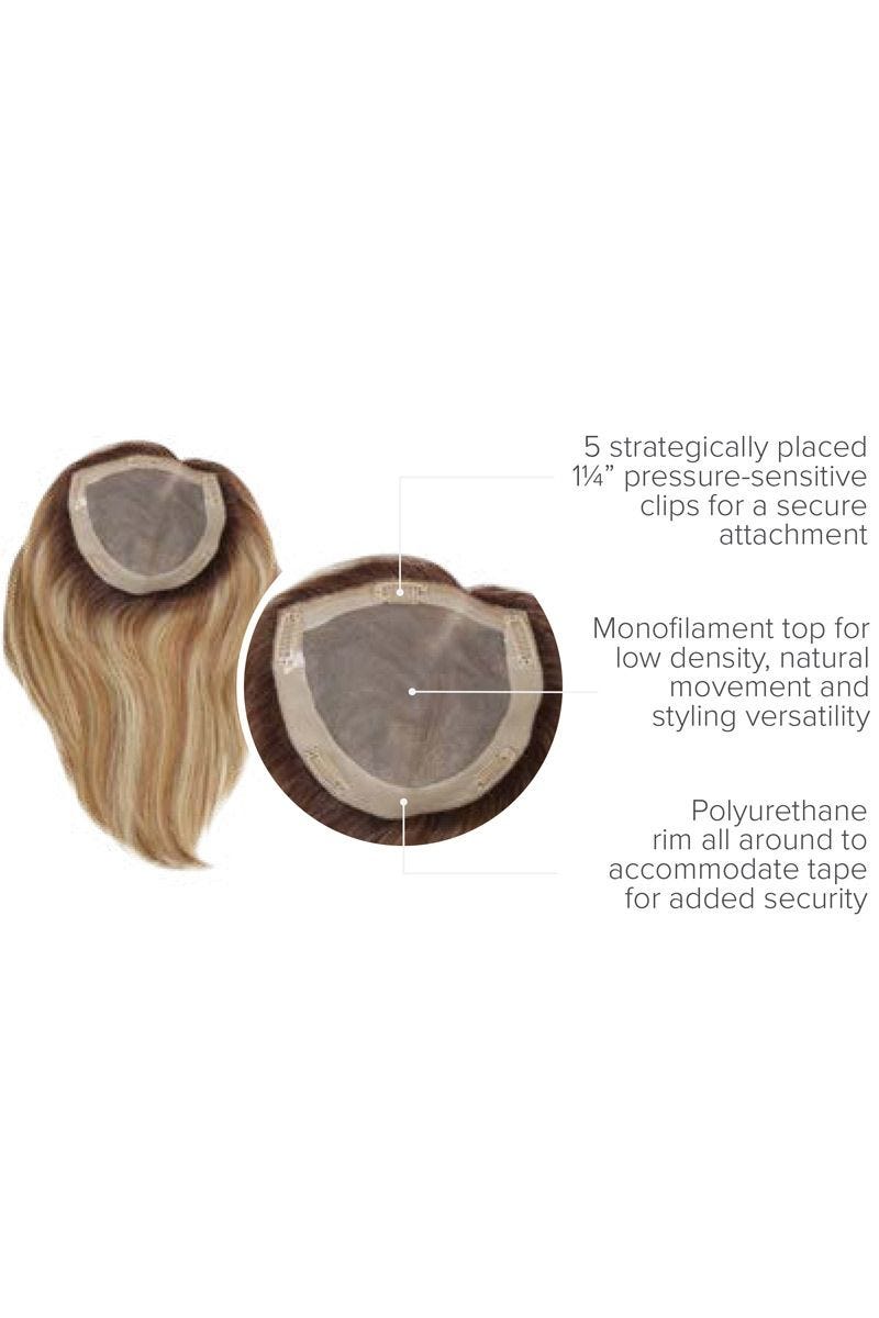 Add a layered look to your style with the Gilded 12" Topper by Raquel Welch. Setting just above shoulder length, this gorgeous style will add an extra dose of volume and thickness to your look. Made from 100% human hair and attached to a monofilament base, you're sure to love the numerous versatile styling options.