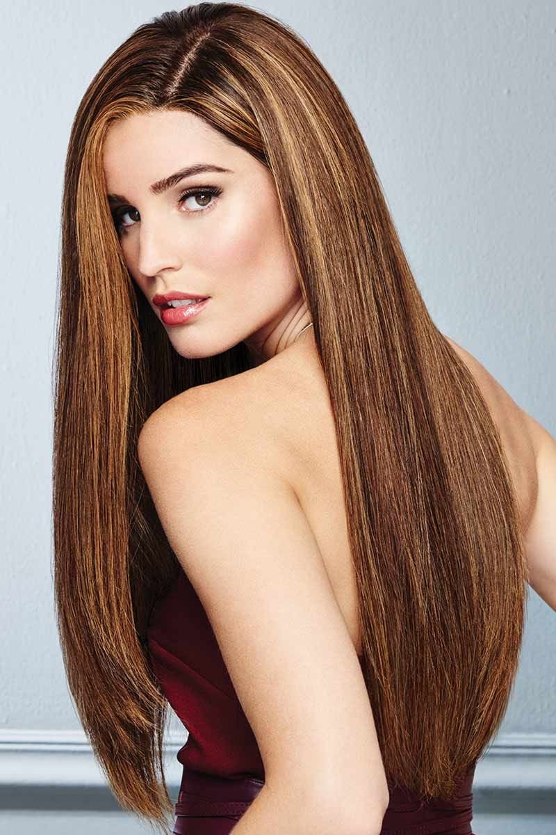 Ultra long and ultra lush, Glamour and More is a style that is guaranteed to turn heads. This human hair wig has long layers that give a luxurious, Hollywood ready look. Extra length, a lace front mono top, and human hair allow you to cut, customize, and style this wig however you want to get the hair of your dreams. Add layers and bangs, change the length, or simply wear this alluring wig as is for a dramatic look. This wig is 100% authentic Remy human hair that is soft, luxurious, and can be styled with curling irons, flat irons, and blow dryers. The hand tied construction gives a comfortable, breathable mesh cap that is ideal for all day wear. An ear-to-ear swiss lace front creates a realistic hairline, giving the appearance of hair growing from the scalp and allowing the hair to be styled away from the face. The monofilament top also gives the appearance of hair growing from the scalp and allows the hair to be parted as the wearer desires.