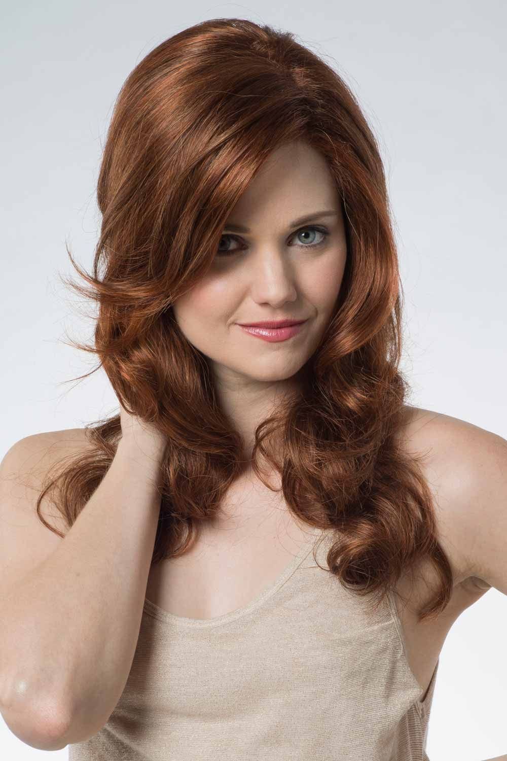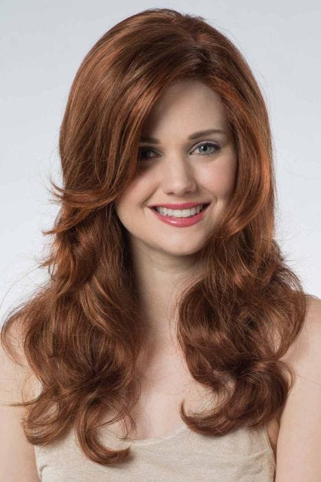 Rich, cascading waves flow down in long layers, reaching about 20–23″ overall, with the sides and nape sitting around 12–14″. A dramatic side bang (8–9½″) sweeps across the forehead, adding softness and a flattering lift. The style feels light and bouncy—waving gently with your movement—not heavy or weighed down.