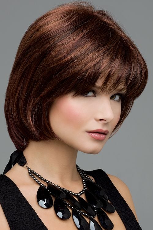 This chin length style is a sure showstopper. Wispy bangs create a sultry style that is sure to suit multiple face shapes. Haley by Envy Wigs features a monofilament top for ample styling options with the appearance of natural hair growth and optimum beathability. This particular wig is best suited for those wearers with an average head size.