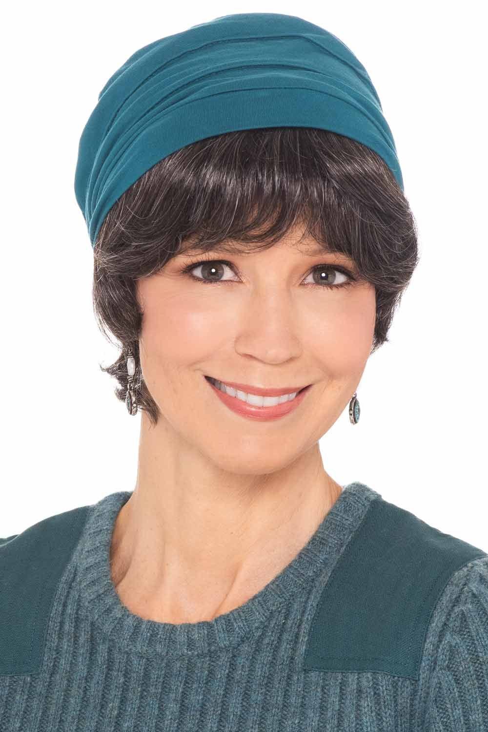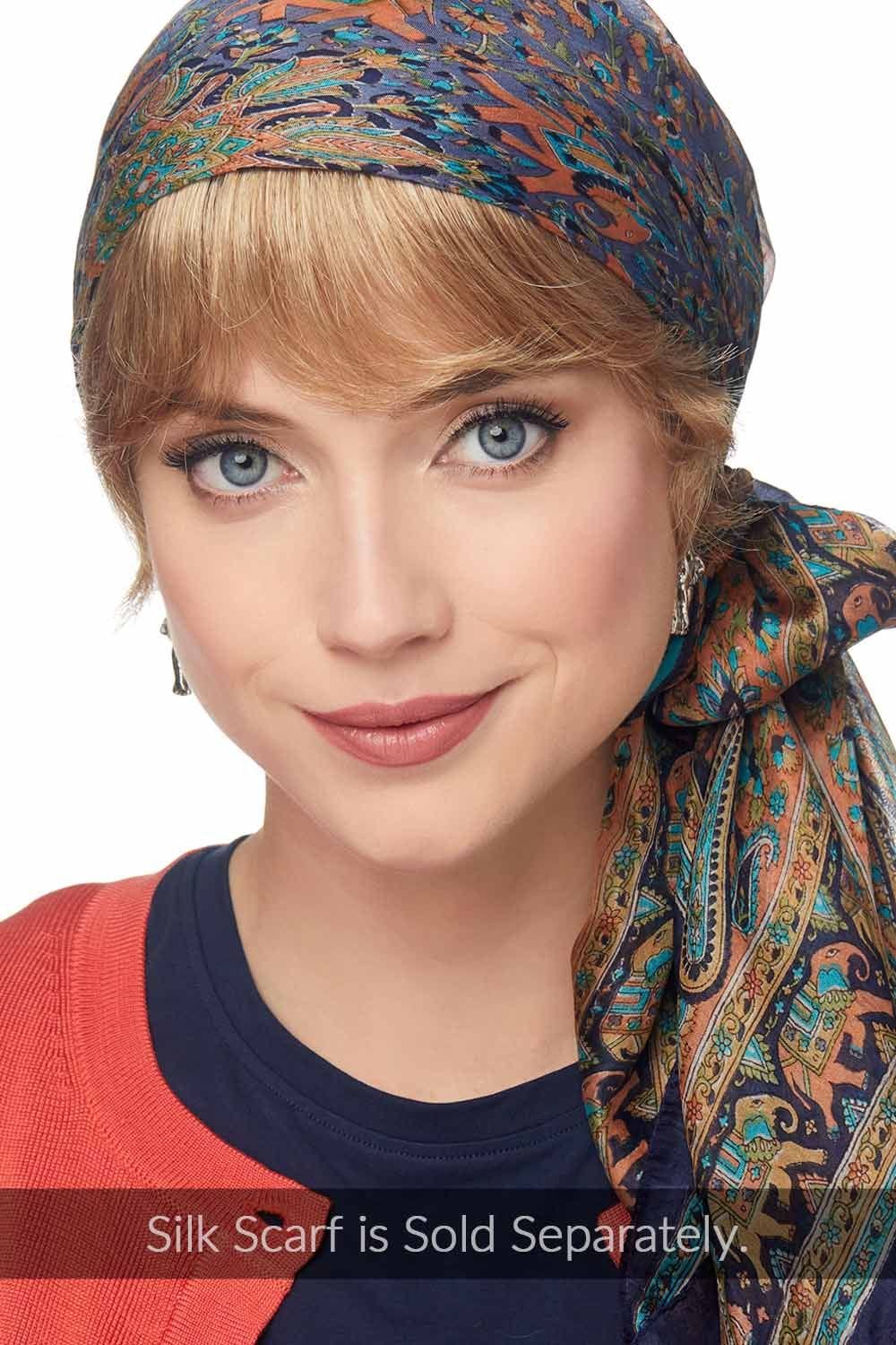 This "Hats with Hair" is perfect to wear with almost any hat or scarf. A "halo" of hair will line all of your hats or scarves to create a truly natural look. This is one of our most versatile products! Our Hats with Hair hairpieces are perfect for women who find full wigs too hot or uncomfortable. They're also perfect for women who just don't like the look of their scarf or hat without any hair underneath. Add your favorite hat, scarf, or turban for a different look every time you wear it! This fashionable hair halo features short locks that go great with just about any look. These easy to use hairpieces are so versatile and are available in several gorgeous shades. They are designed with comfort in mind, as the top part of the head is left uncovered to provide breathability under your hat. Wear it dressed up or dressed down, you're sure to love the look of our Short Hair Halo!