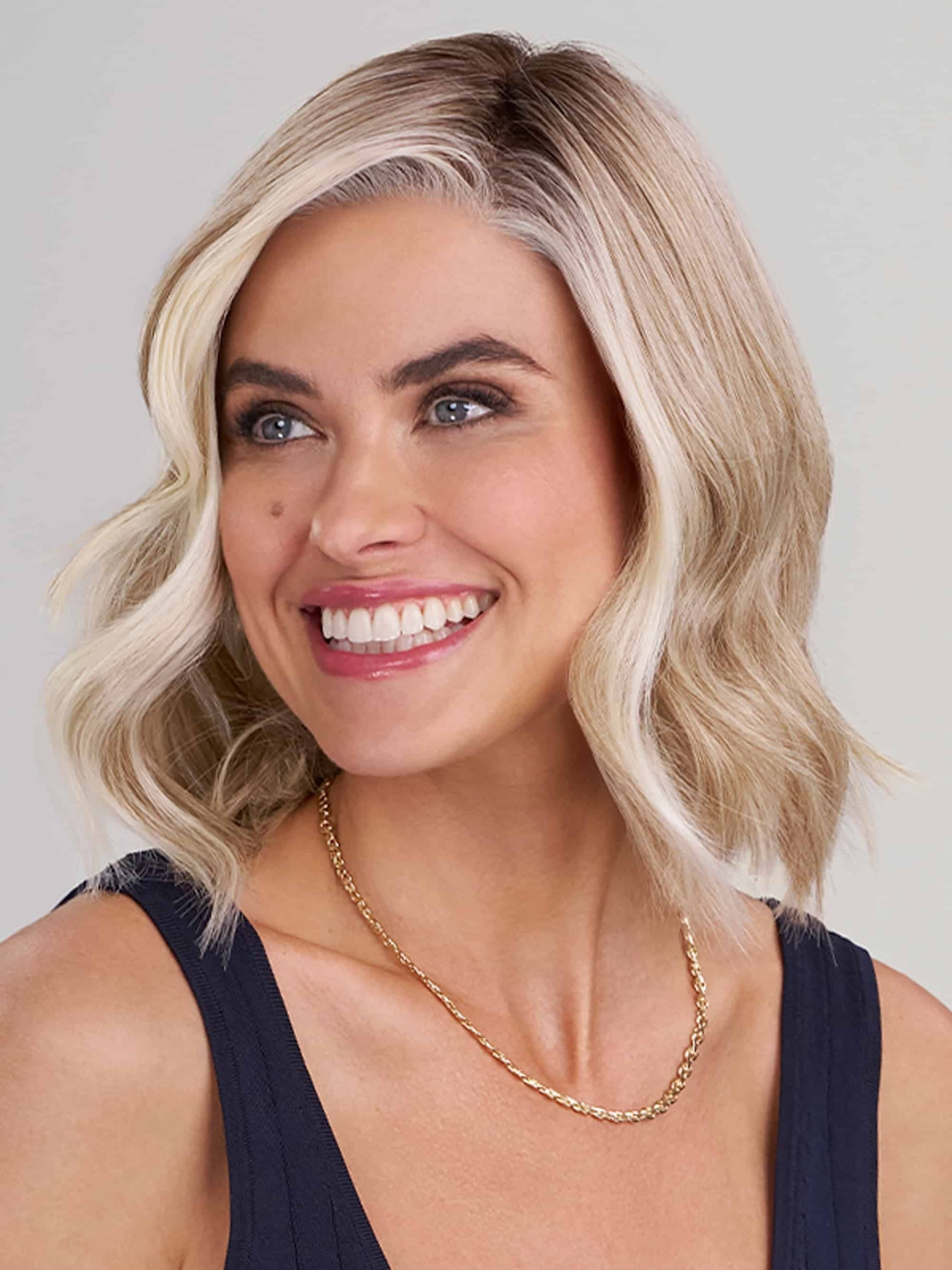 Fall in love with Haute's perfectly balanced lob - a style chameleon that bends to your creative vision. This chic cut features heat-defiant fibers that can handle styling tools up to 350 degrees, letting you create straight, curly, or wavy looks whenever the mood strikes. The monofilament part creates the appearance of natural hair growth directly from the scalp, while the lace front provides a flawless hairline that looks like your own.