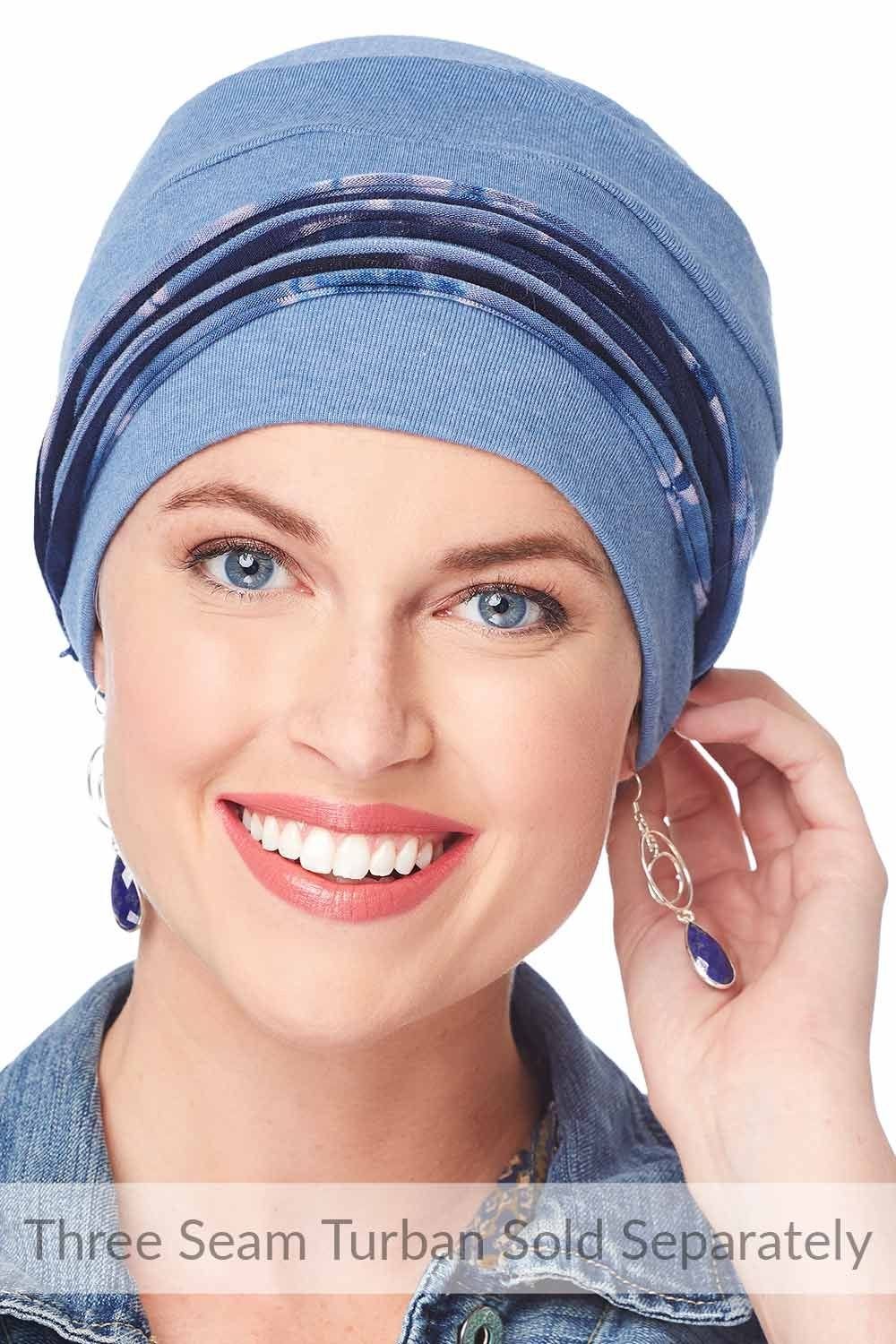 This long tube of soft, stretchable fabric is twisted into multiple figure 8's, to create a headband. The multiple strips of fabric create a layered effect, adding fullness to your hat, turban or scarf. Available in multiple colors, this is a perfect accessory to make your headwear pop. Really stand out in this fashionable look. This headband can even be worn alone as an accessory for women with hair. Pictured with our Three Seam Turban, sold separately.
