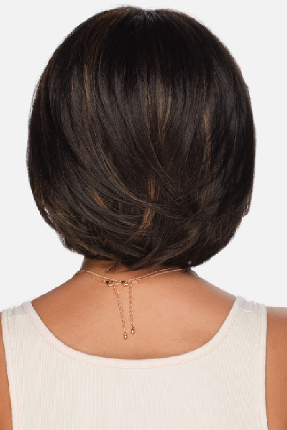 This chin-length cut brings classic style to life with a modern twist. The rounded silhouette creates a soft, feminine shape while subtle layers add just the right amount of movement. Gentle bangs frame your face beautifully. Made with a blend of human and synthetic hair, it gives you natural movement with easier maintenance.