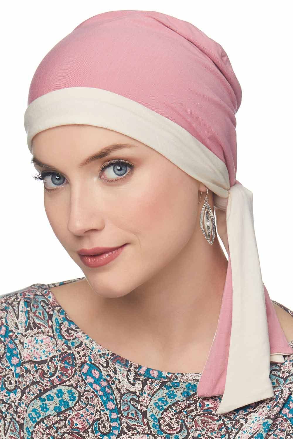 This soft as silk head covering is made in our ultra comfy viscose from bamboo knit fabric. This easy to tie head wrap features a basic cap that slips on the head, with two long tails. The tails can be tied in multiple ways for a wide variety of looks. Tie the two tails in a knot in the back or on the side for a basic wrap. Tie a bow for a pretty head wrap or tied scarf look. Twist the ties on the side and tuck the tails in for a retro rosette look. Turn the headwrap inside out and you have a whole new head covering for two wraps in one! Create dozens of looks with just one easy to use head wrap. This beautiful head wrap features total head coverage when tied, perfect for women with hair loss due to cancer, chemotherapy, alopecia, or other types of medical hair loss conditions.