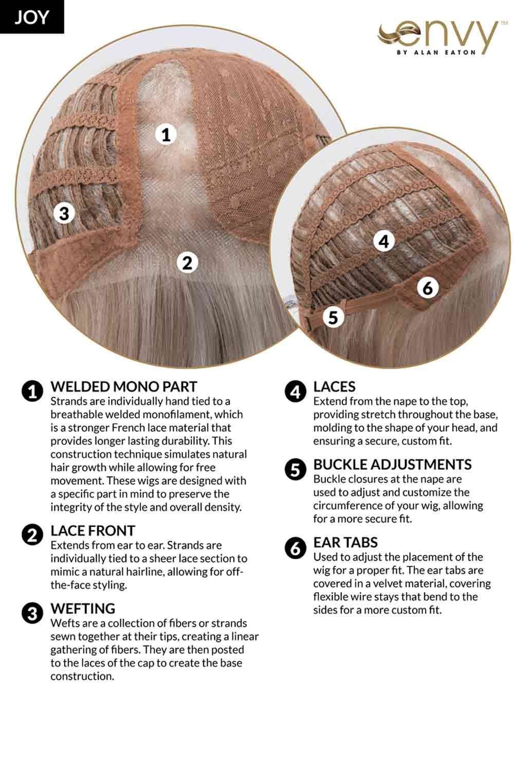 The Joy wig by Envy features face-framing layers that create texture and movement, complementing any face shape. With a customizable fit, ultra-natural monofilament part, and invisible lace front hairline, Joy offers versatile styling options.