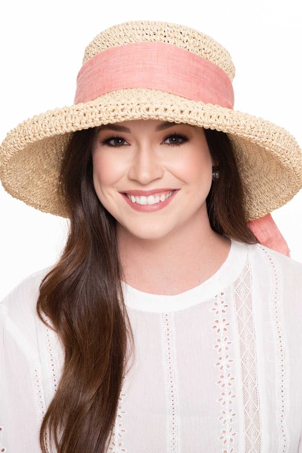 Our Kettle Brim Ribbon Sun Hat is made from hand-crocheted toyo and offers and inner ribbon for a more comfortable feel along with a ribbon around the brim for a delicate, yet glamorous appearance.