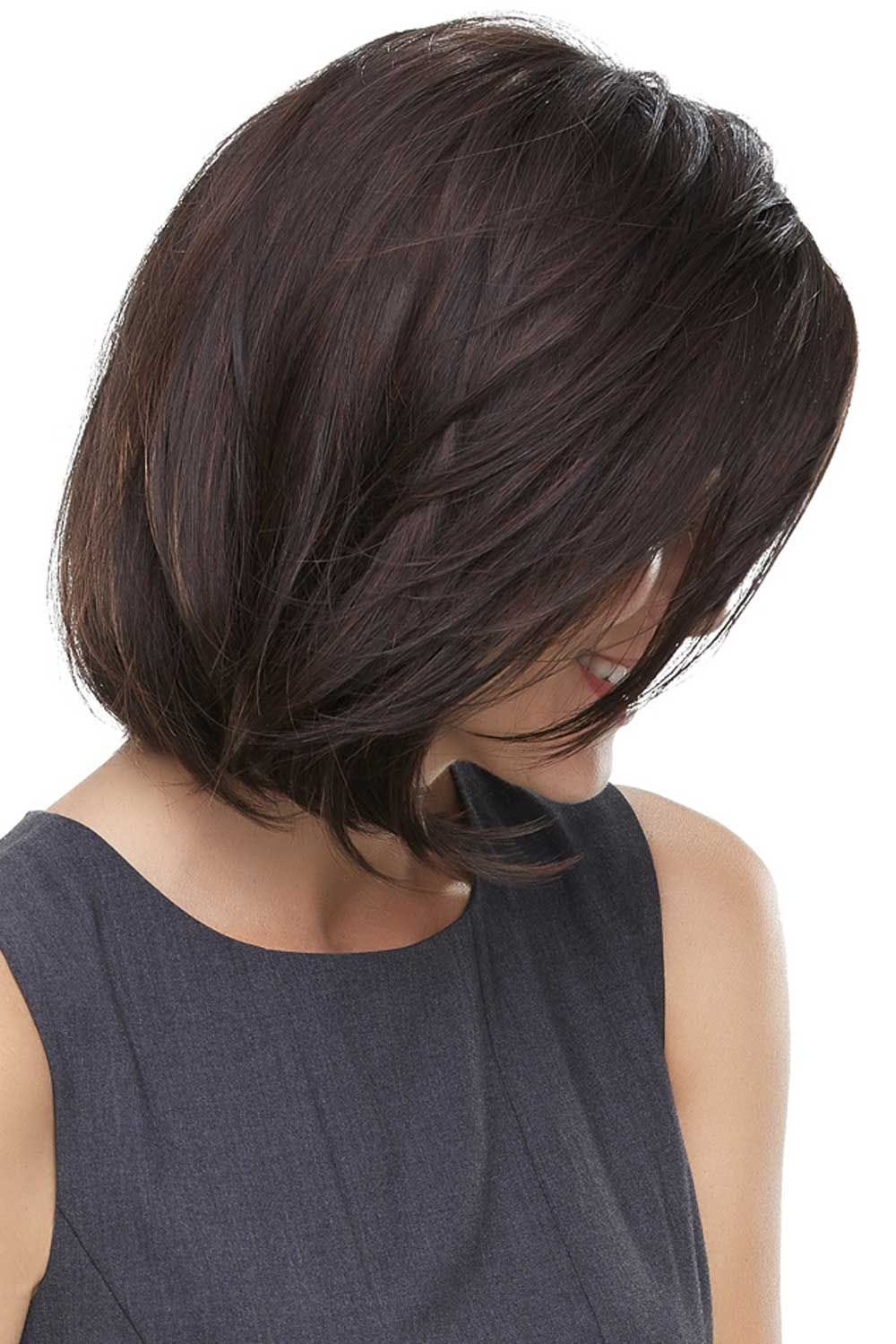 This long bob screams sophistication. Face-framing, graduated layers create movement and give this style a realistic look. The ends are lightly flipped and can be combed or finger styled several ways to give you the most flattering look possible. The monofilament top is hand tied, giving the natural appearance of hair growing directly from the scalp. The part can be easily shifted or changed depending on your preference. The lace front of this wig gives a natural looking hair line and allows the hair to be styled off of the face or behind the ears with ease. Cameron by Jon Renau Wigs is the ultimate in styling versatility.