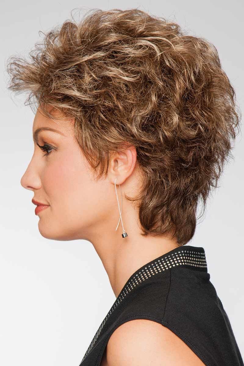 This short, shag style has soft curls throughout. Height at the crown gives a full look while short bangs gently brush the forehead for a face framing affect. Instinct by Eva Gabor contains several comfort features inside of the wig cap including open ear tabs and an open extended nape. The hidden inside weft gives this wig a natural looking hairline.