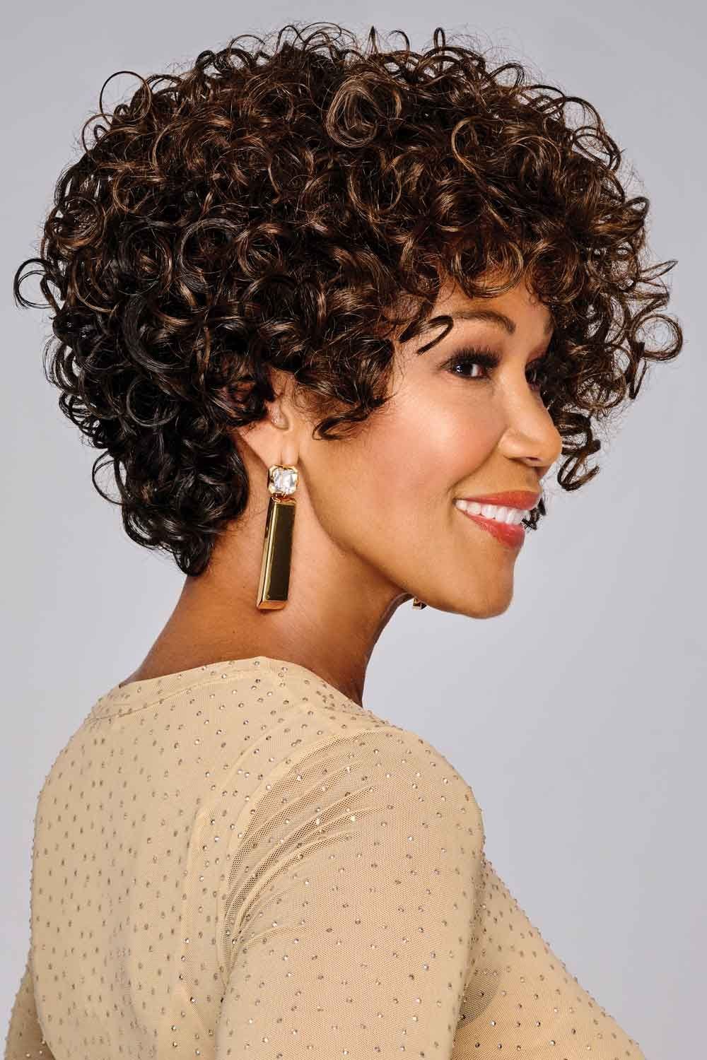 Leilani is a celebration of spirals: voluminous, springy curls sculpted into a stacked V shape that nestle perfectly into the nape. Despite the density, the look never feels heavy—it’s light, lively, and full of movement. This short curly wig balances playful volume with neat structure, giving you romantic texture that still reads polished.