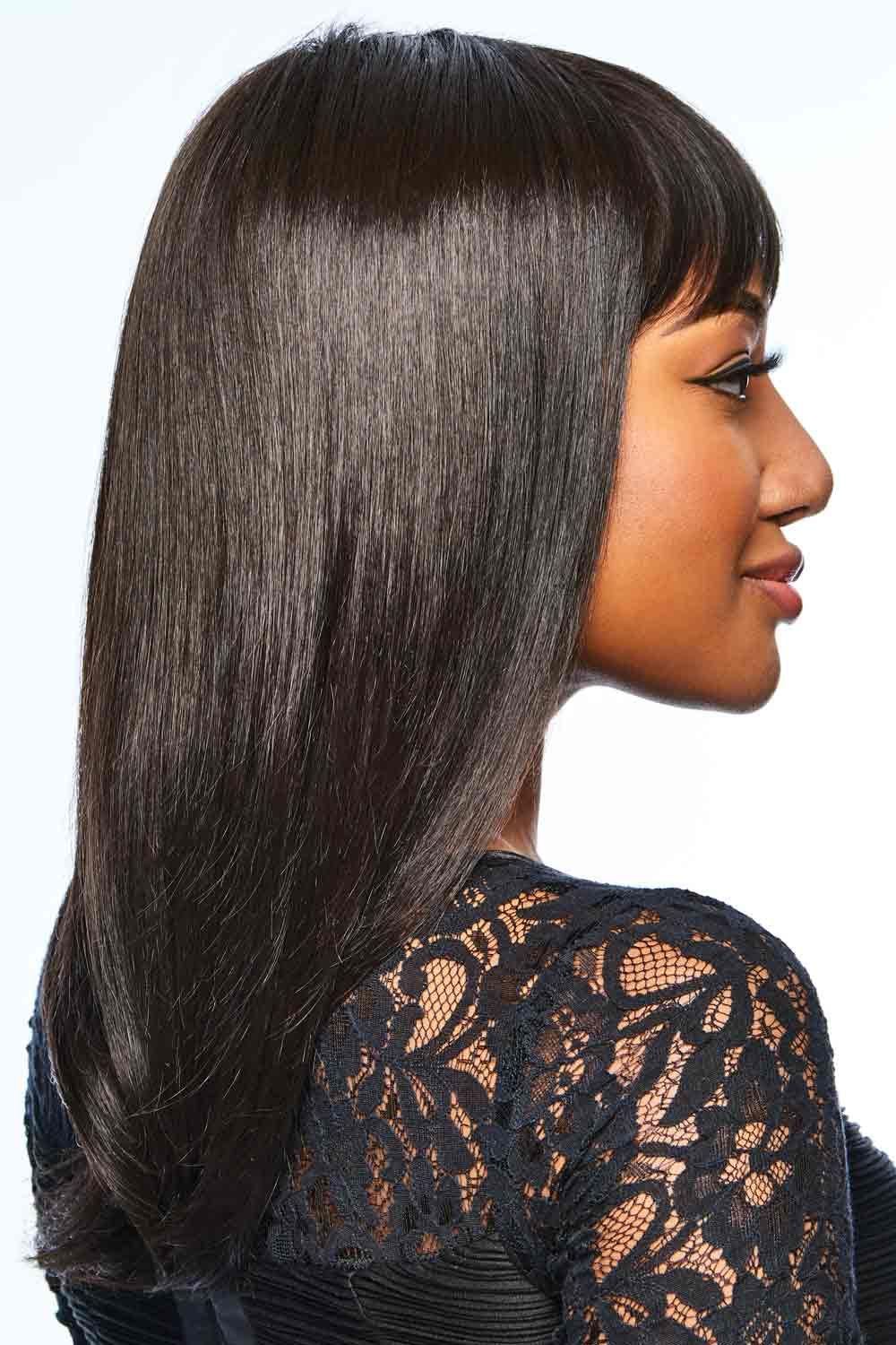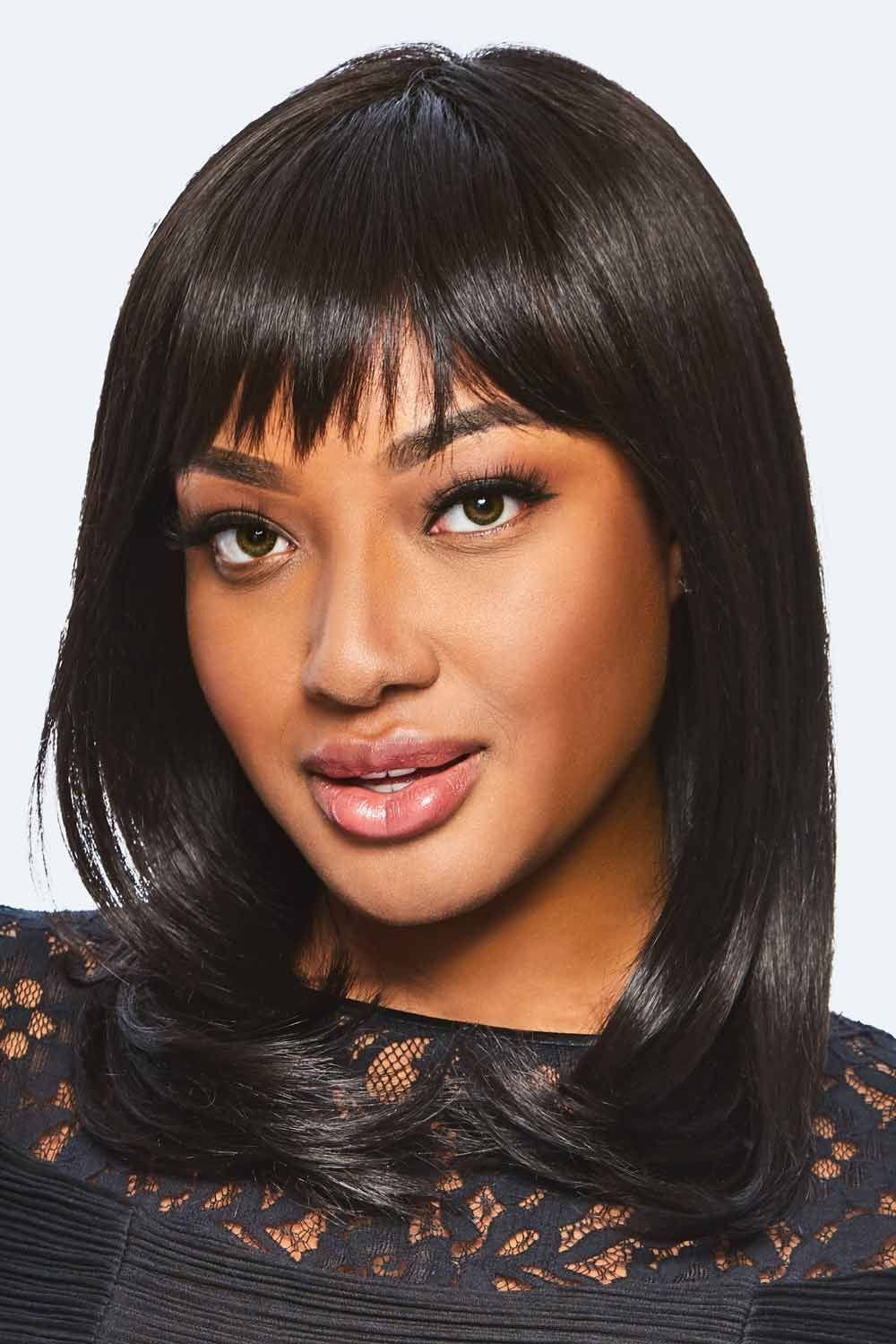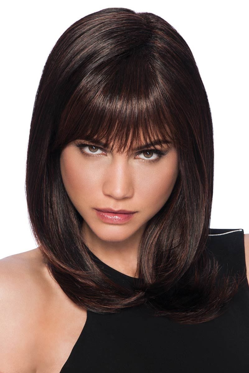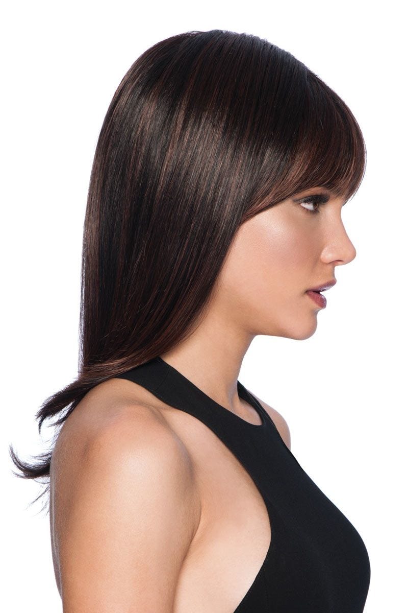 Long With Layers features textured bangs for a modern, wispy look and heat friendly synthetic strands for styling versatility. Shoulder length strands boast soft layers with ample movement for a naturally alluring look. The base of this cap is made from a resilient stretch material for a custom-like fit that can't be beat! A velvet front rim, open ear tabs and an extended nape adds an element of comfort to this wig style. We just know you're going to love this look!